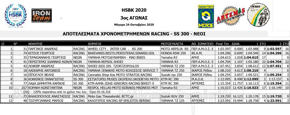 ΑΠΟΤΕΛΕΣΜΑΤΑ ΧΡΟΝΟΜΕΡΤΡΗΜΕΝΩΝ RACING και SS300 -ΝΕΩΝ