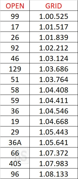 Από την 4η θέση στην δεύτερη σειρά θα εκκινήσει Ο Ανδρέας Παπατριανταφύλλου, μπροστά από τον Γιάννη Τσιγονάκη, και τον Δημήτρη Νικολόπουλο που συμπληρώνει την πρώτη εξάδα.