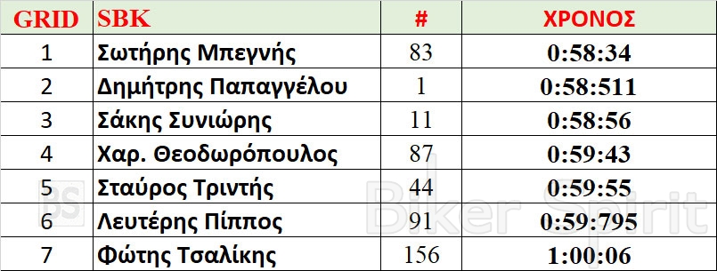 ΑΠΟΤΕΛΕΣΜΑΤΑ ΧΡΟΝΟΜΕΤΡΗΜΕΝΩΝ SBK