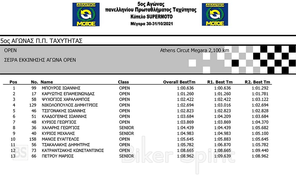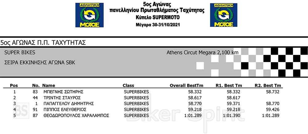 ΑΠΟΤΕΛΕΣΜΑΤΑ ΧΡΟΝΟΜΕΤΡΗΜΕΝΩΝ SBK