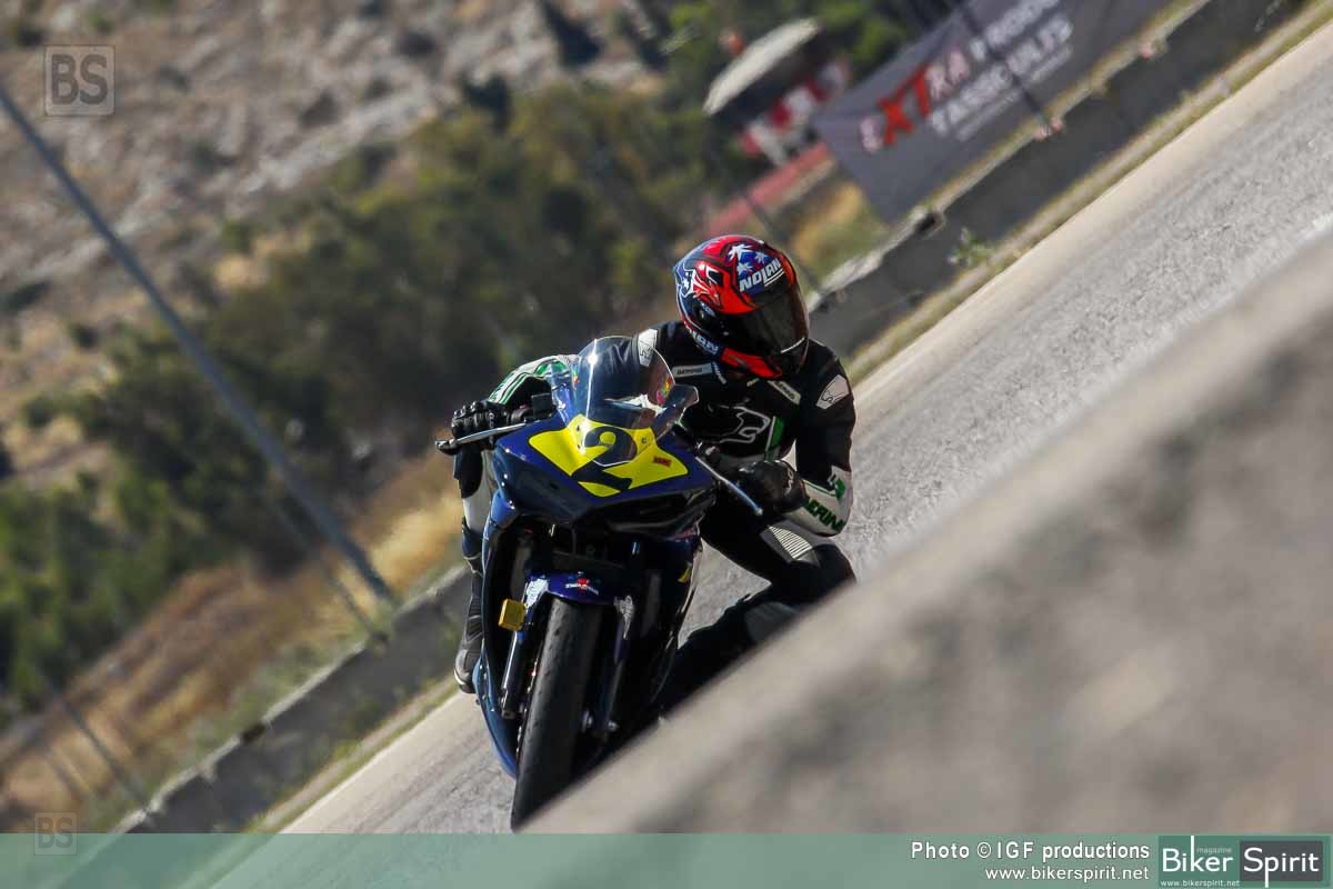 Ο Ανδρέας Παπαντριανταφύλλου πάνω σε ένα Kawasaki ZX10 κάνει τον ταχύτερο γύρο της ημέρας στην κατηγορία OPEN με χρόνο 1:02.458 που έκανε στα δεύτερα χρονομετρημένα!