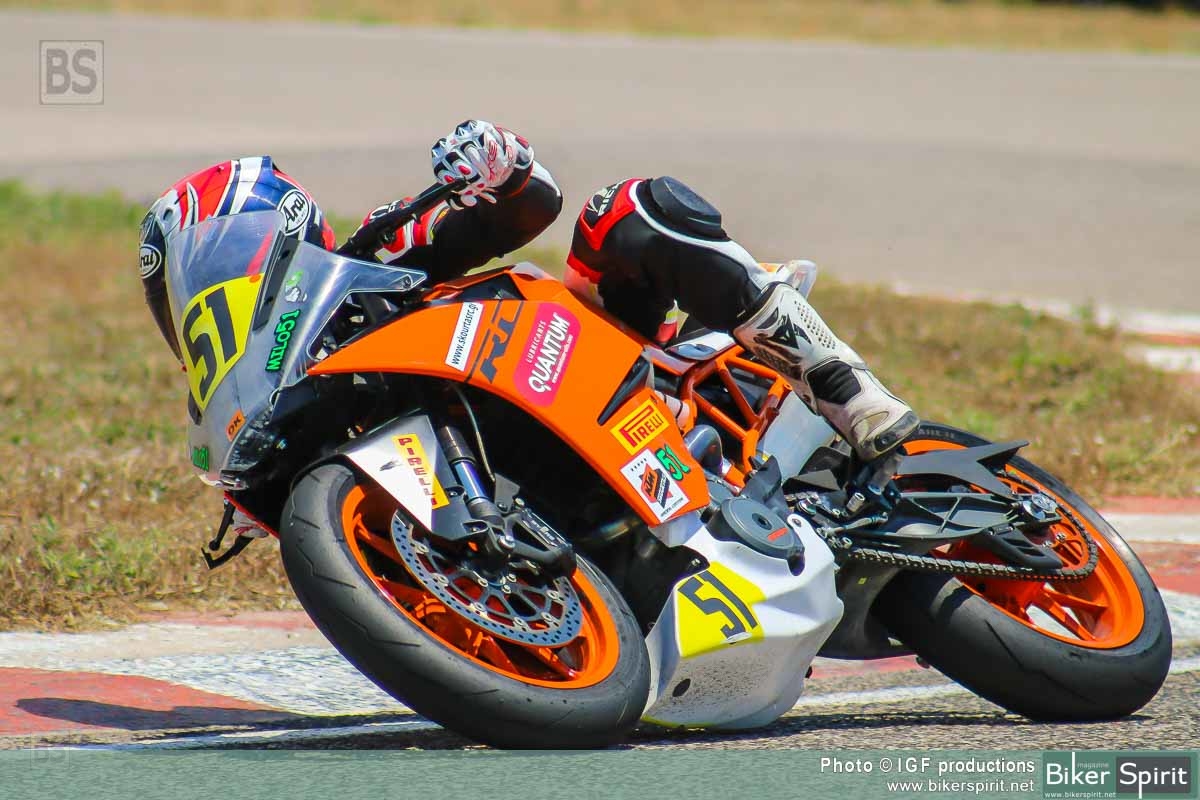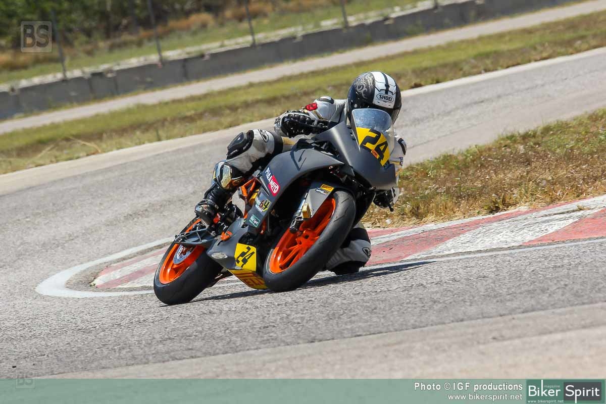 Στην δεύτερη θέση είναι o Θωμάς Σκούρτας με KTM RC 390 και με χρόνο 1:07.265, ενώ την πρώτη σειρά της εκκίνησης θα συμπληρώσει ο Γιώργος Μπαξισόγλου με και αυτός με KTM RC 390 και με χρόνο 1:07.485.
