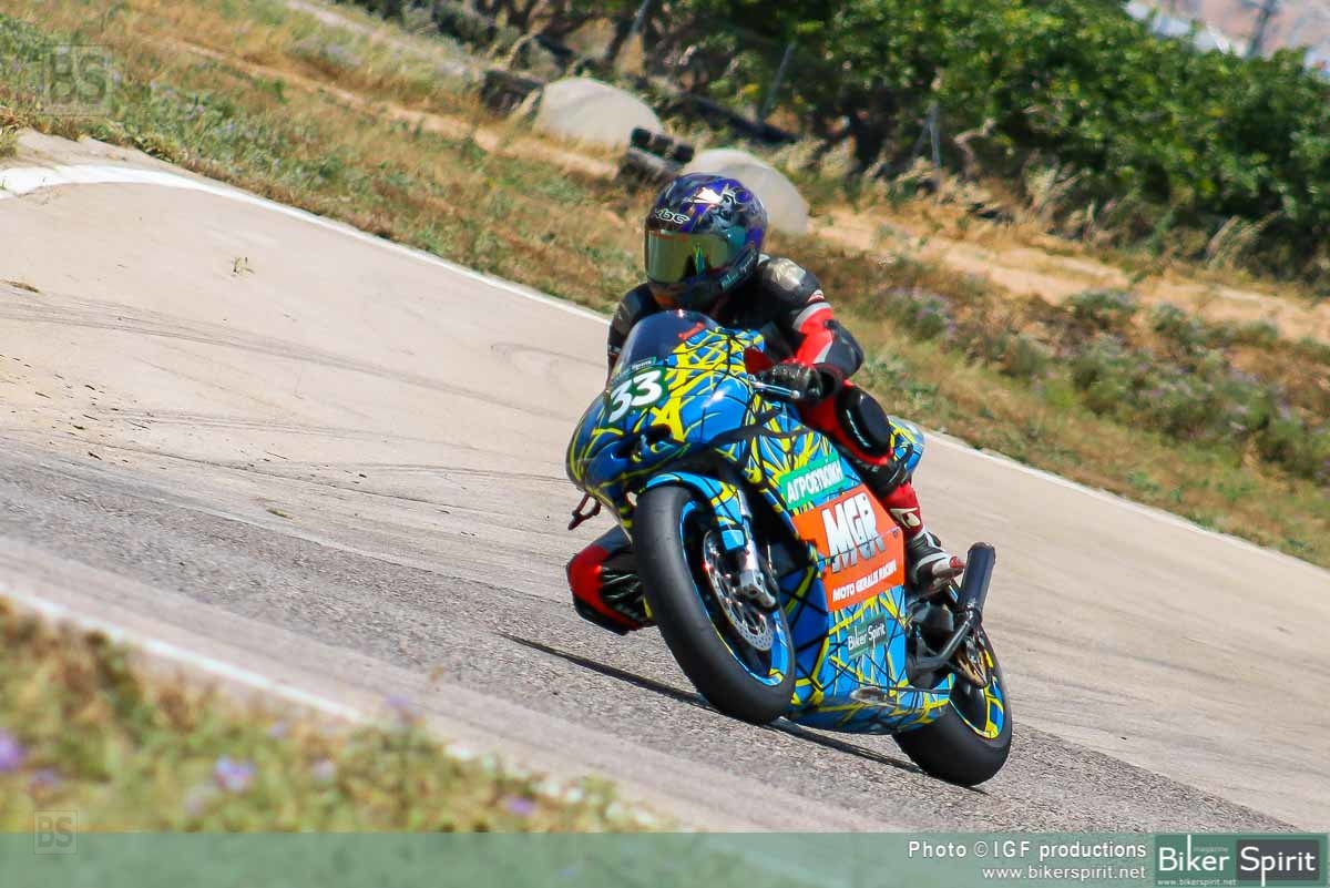 Στην δεύτερη θέση ο Κώστας Σταμπέλος, όπου έγραψε χρόνο 1:02.887 πάνω σε ένα Yamaha R1, ενώ τον τρίτο καλύτερο χρόνο έκανε ο νικητής του προηγούμενου αγωνα της κατηγορίας στις Σέρρες, Μενέλαος Κοντογιάννης με χρόνο 1:03.564 πάνω σε ένα HONDA CBR 600 που έκανε στα πρώτα χρονομετρημένα, αφού στα δεύτερα δεν μπήκε καθόλου!