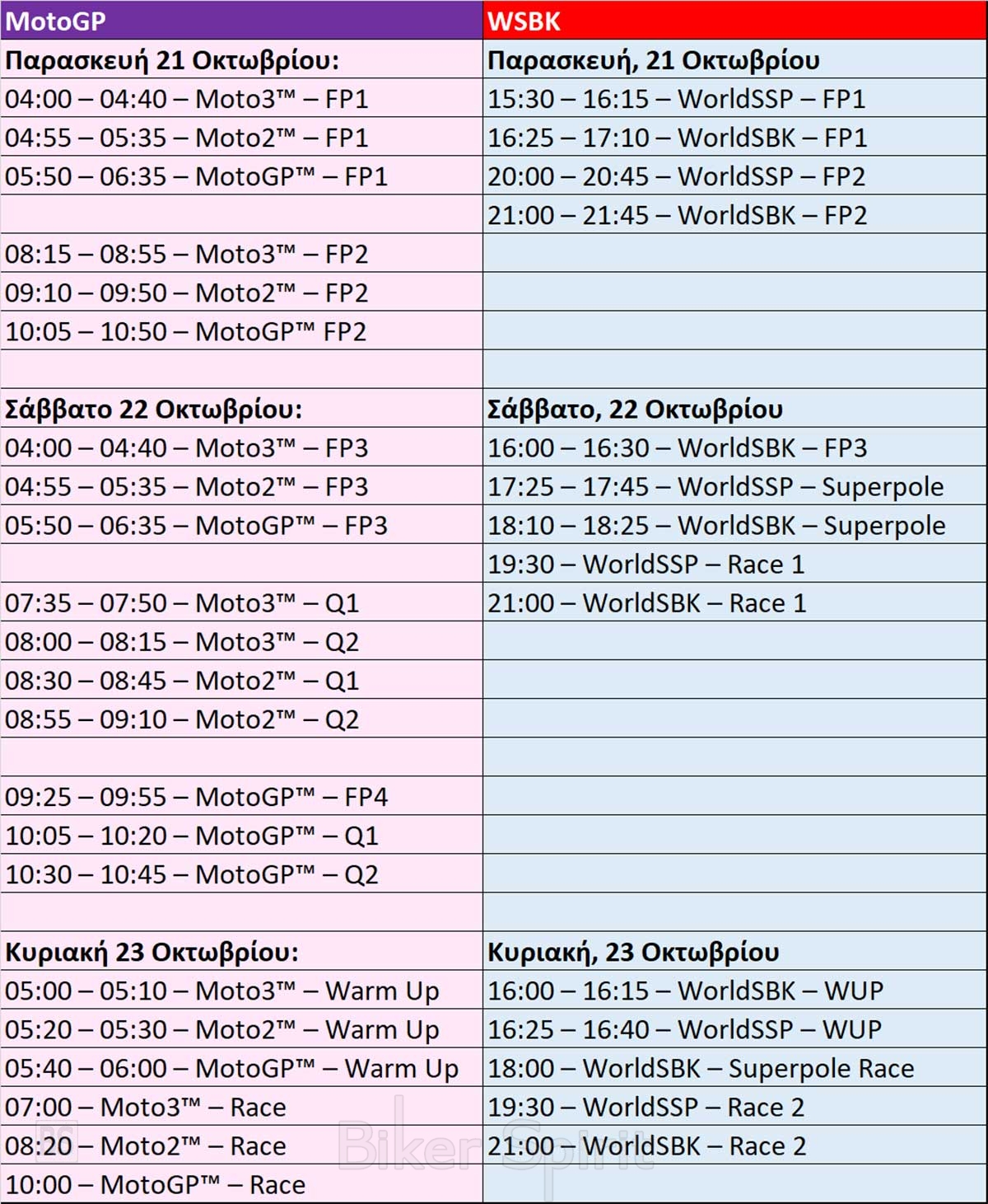Οι ώρες των αγώνων είναι διαφορετικές αφού το paddock του WSBK βρίσκεται σε άλλη ήπειρο, οπότε έχουμε 6 ώρες διαφορά!