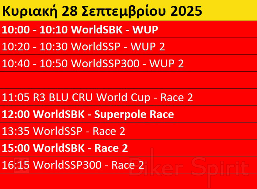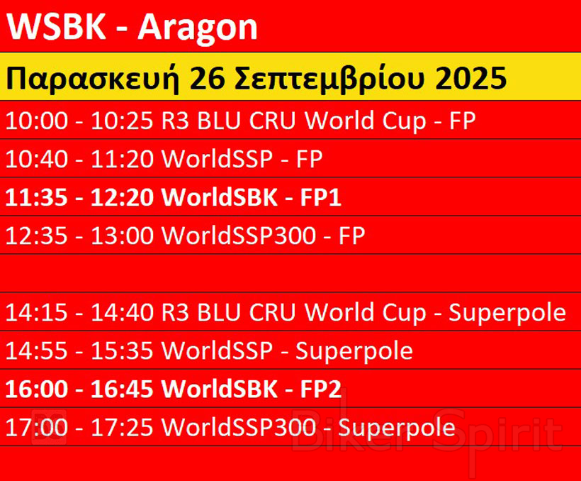 Πρόγραμμα και ώρες του 10ου γύρου WSBK στο Aragon της Ισπανίας από 26 έως 28 Σεπτεμβρίου 2025 – Ώρες των δοκιμαστικών και των Αγώνων
