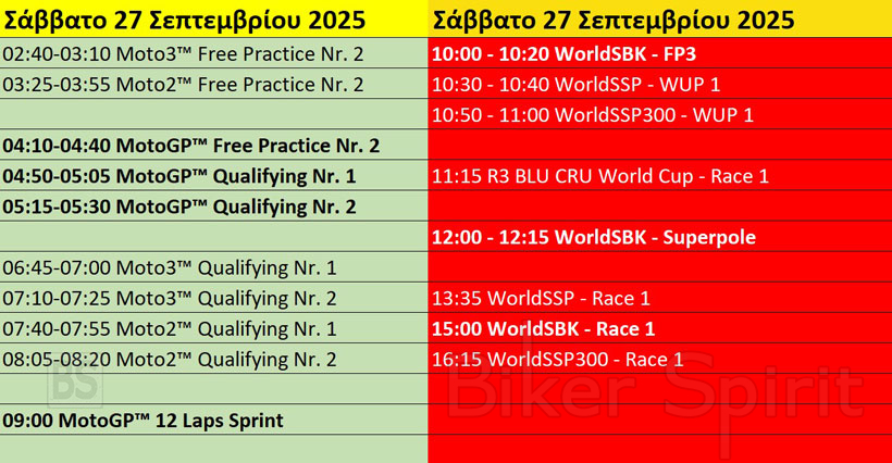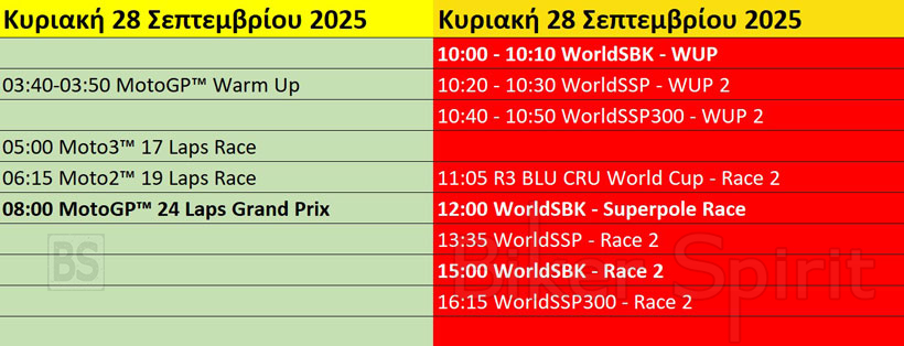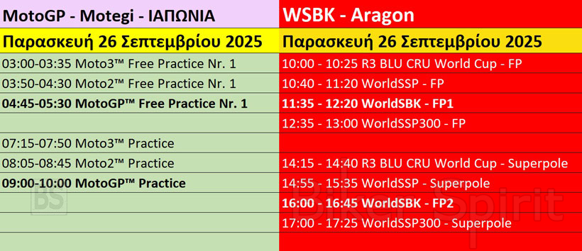 Να θυμίσουμε πως το ίδιο τριήμερο θα διεξαχθεί και ο 17ος γύρος του MotoGP στο Motegi. Μπορείτε να δείτε το παράλληλο πρόγραμμα παρακάτω >>