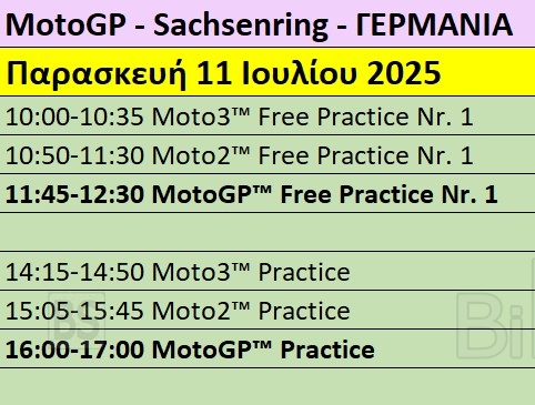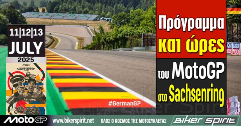 Πρόγραμμα και ώρες του 11ου αγώνα MotoGP 2025 στο Sachsenring – Ώρες των δοκιμαστικών, του αγώνα SPRINT και των Αγώνων στις 11-12-13/07/2025
