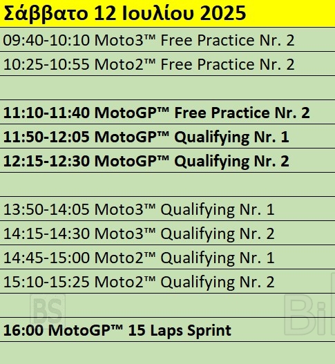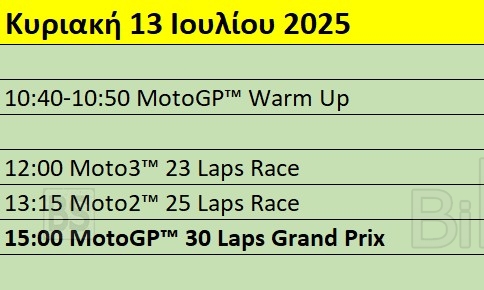 Να θυμίσουμε πως το ίδιο τριήμερο θα διεξαχθεί και ο 7ος γύρος του WSBK στo Ηνωμένο Βασίλειο. Μπορείτε να δείτε το παράλληλο πρόγραμμα παρακάτω >>