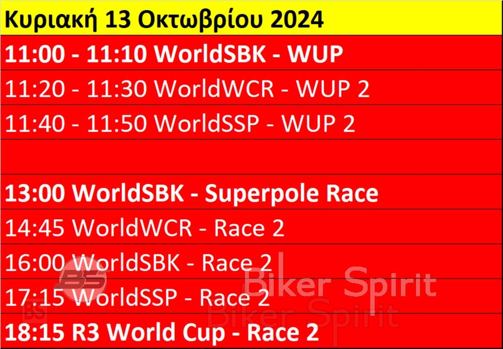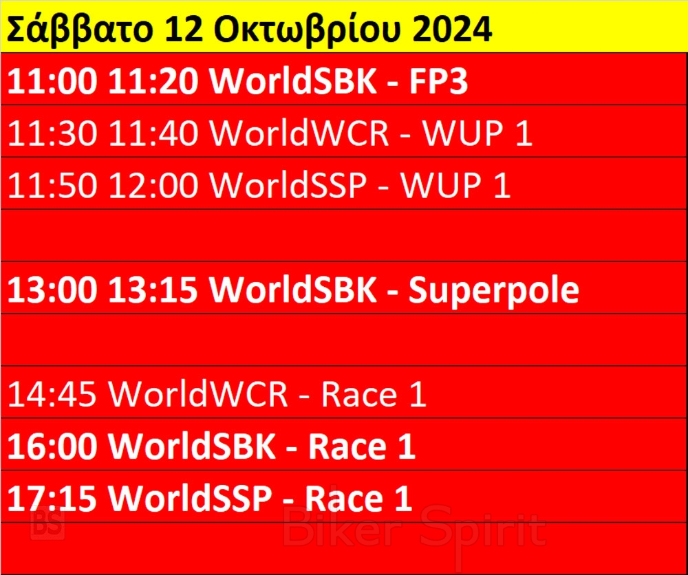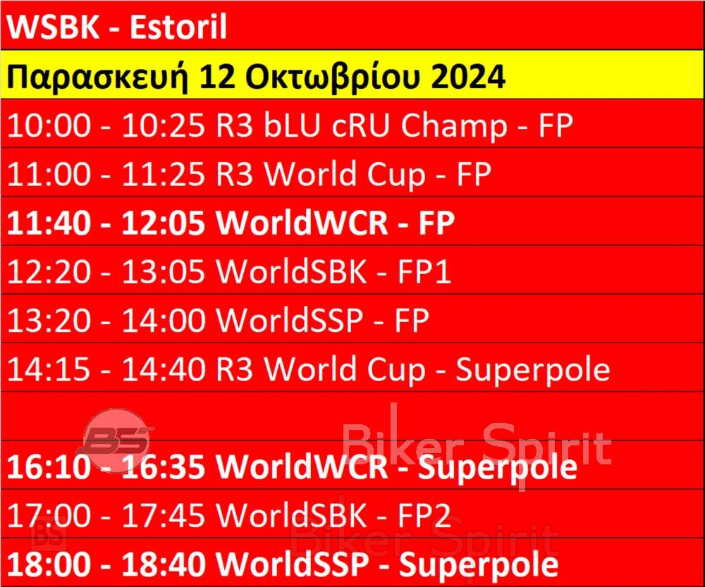 Πρόγραμμα και ώρες του 11ου γύρου WSBK στο Estoril της Πορτογαλίας από 11 έως 13 Οκτωβρίου 2024 – Ώρες των δοκιμαστικών και των Αγώνων