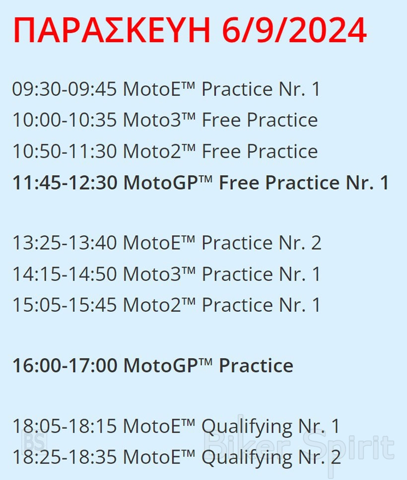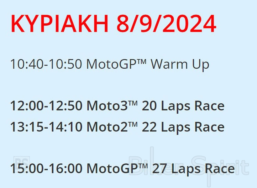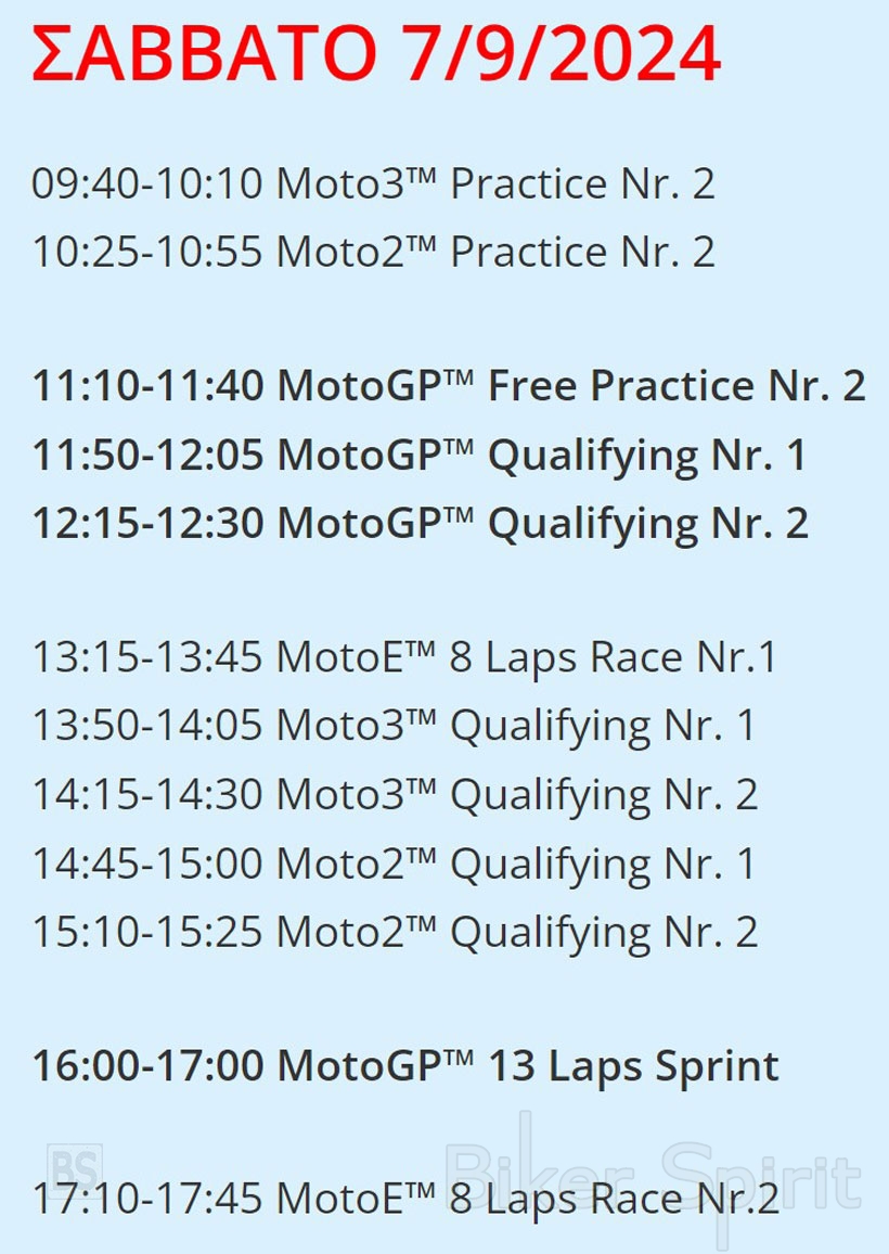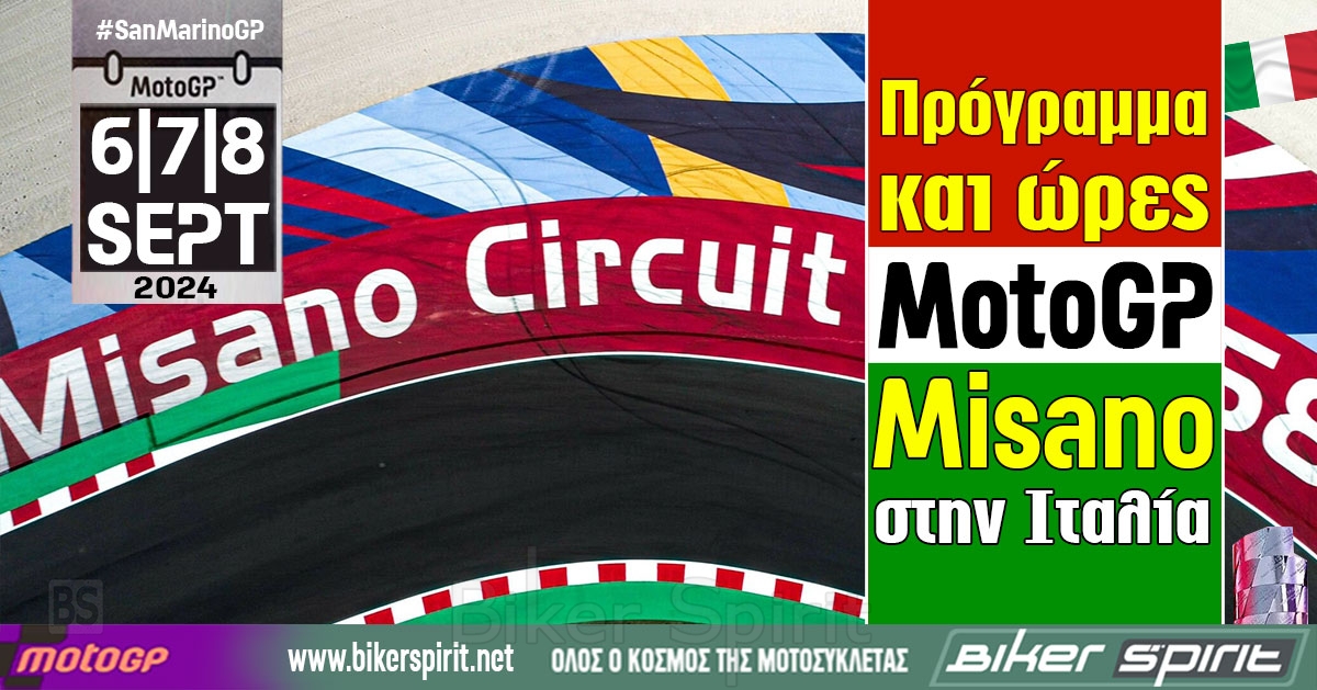 Πρόγραμμα και ώρες του 13ου αγώνα MotoGP 2024 στο Misano – Ώρες των δοκιμαστικών, του αγώνα SPRINT και των Αγώνων στις 6-7-8/9/2024