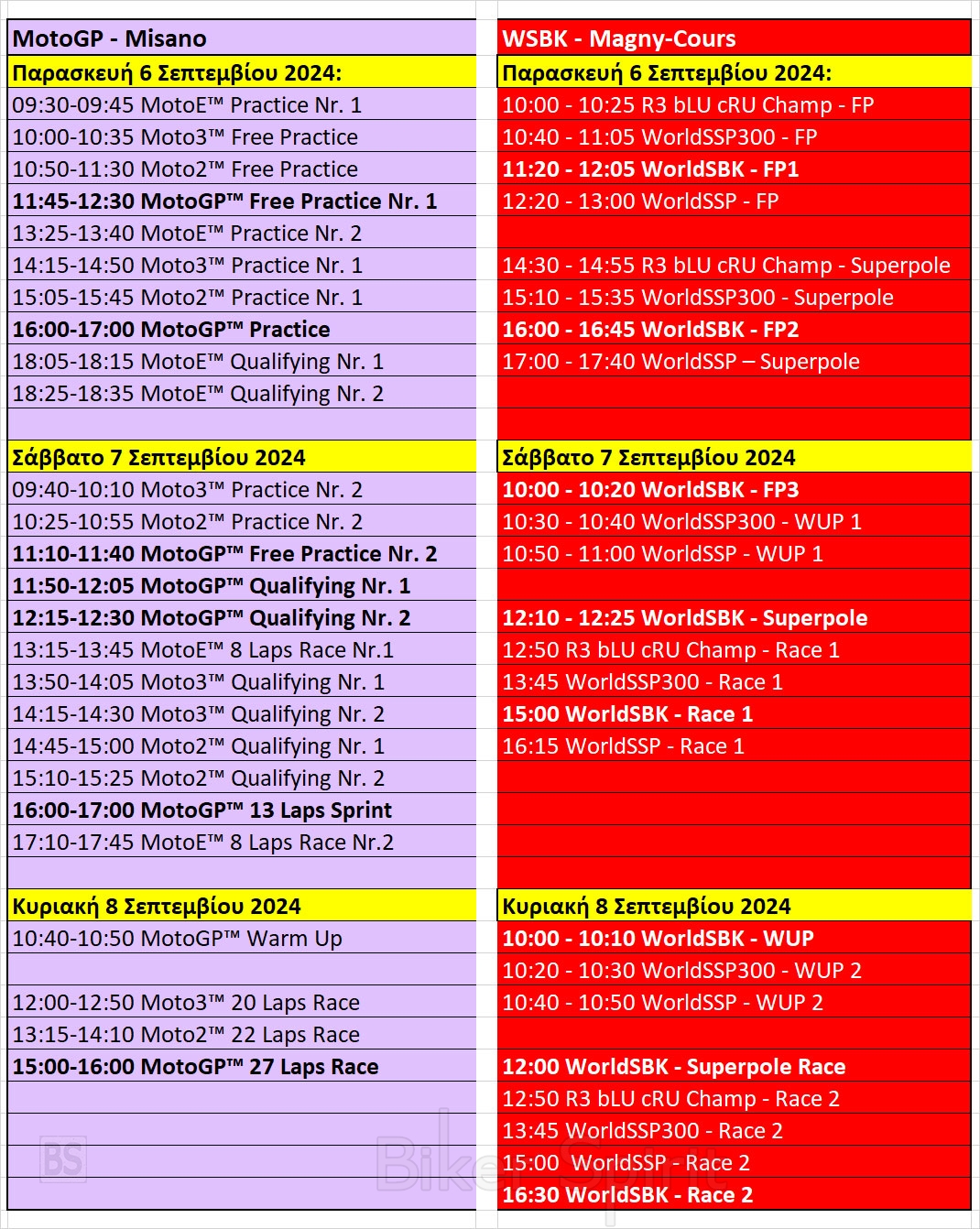 Να θυμίσουμε πως το ίδιο τριήμερο θα διεξαχθεί και ο 8ος γύρος του WSBK στο Magny-Cours. Μπορείτε να δείτε το παράλληλο πρόγραμμα παρακάτω >>