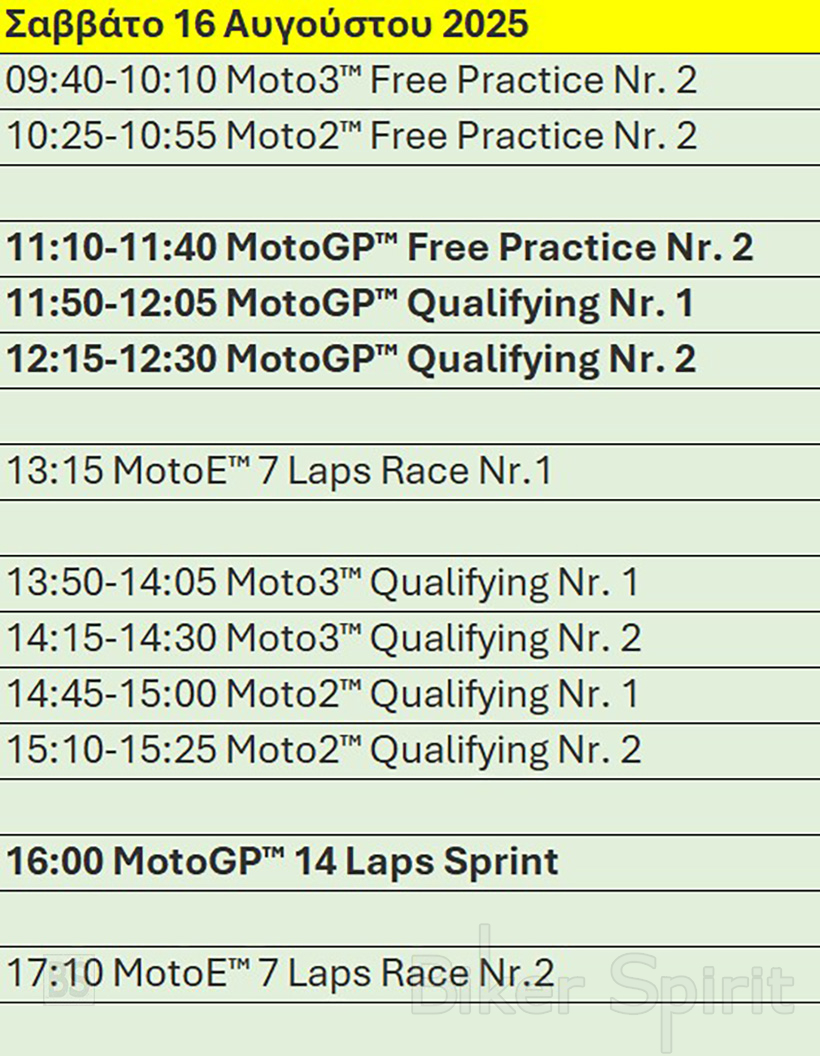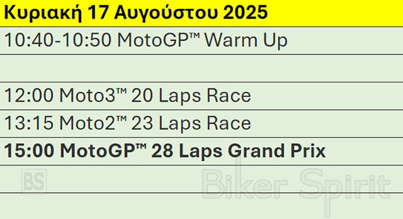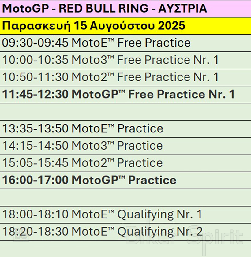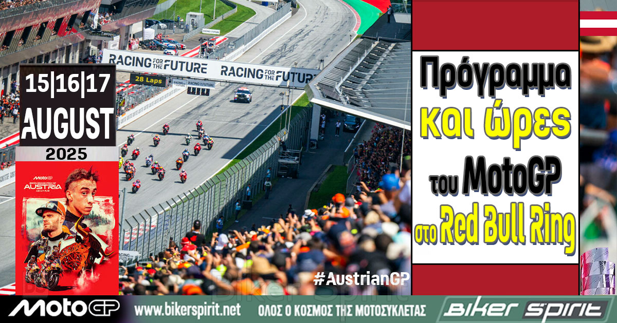 Πρόγραμμα και ώρες του 13ου αγώνα MotoGP 2025 στο Spielberg στην πίστα Red Bull Ring της Αυστρίας – Ώρες των δοκιμαστικών, του αγώνα SPRINT και των Αγώνων στις 15-16-17/8/2025