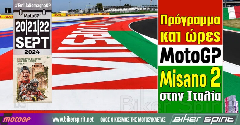 … Continue reading Πρόγραμμα και ώρες του 14ου αγώνα MotoGP 2024 στο Misano 2 – Ώρες των δοκιμαστικών, του αγώνα SPRINT και των Αγώνων στις 20-21-22/9/2024