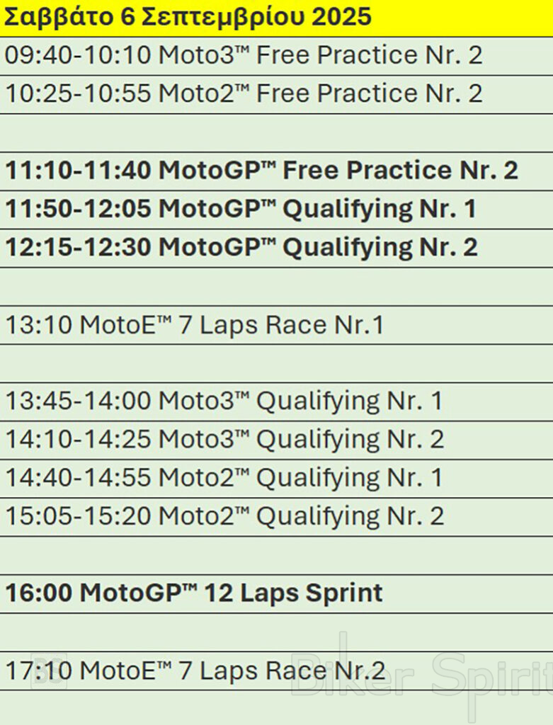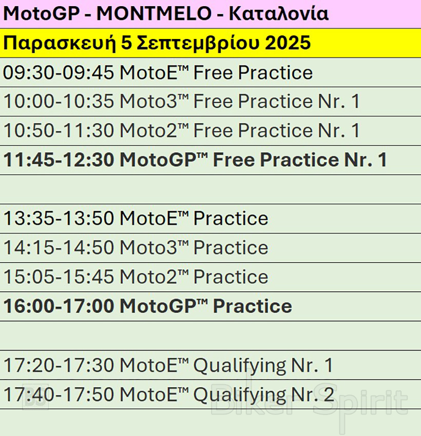 Πρόγραμμα και ώρες του 15ου αγώνα MotoGP 2025 στο Montmelo της Καταλονίας – Ώρες των δοκιμαστικών, του αγώνα SPRINT και των Αγώνων στις 5-6-7/9/2025