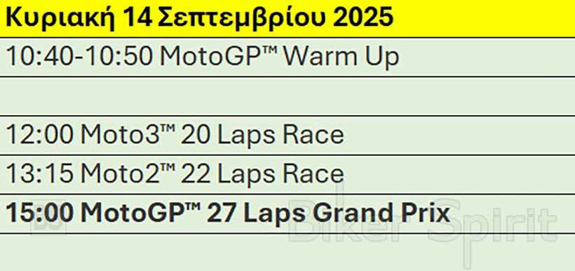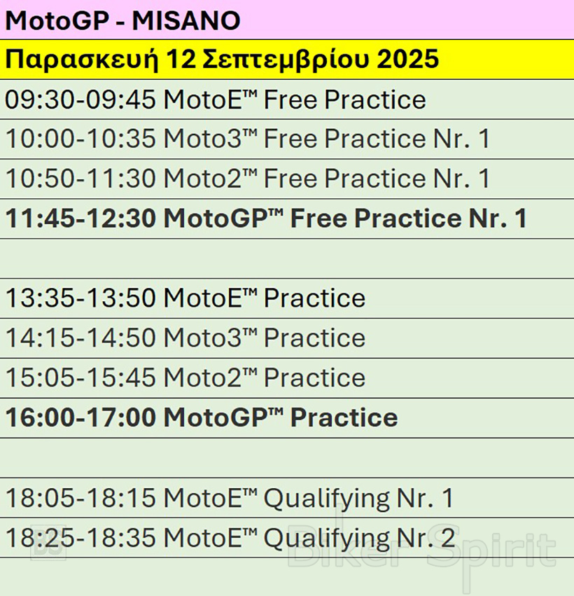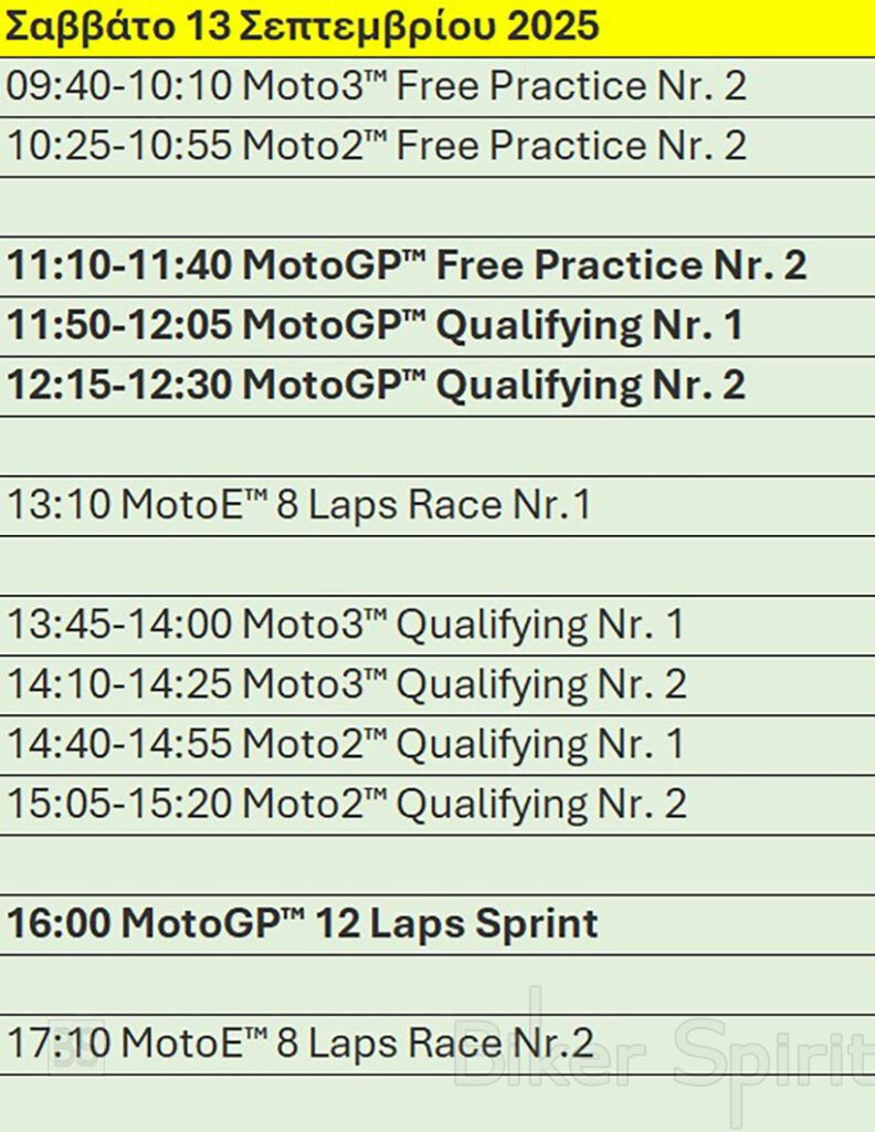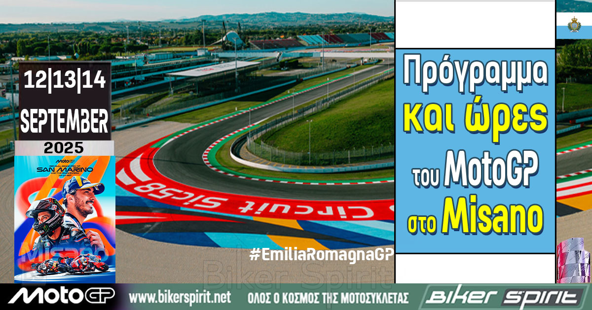 Πρόγραμμα και ώρες του 16ου αγώνα MotoGP 2025 στο Misano – Ώρες των δοκιμαστικών, του αγώνα SPRINT και των Αγώνων στις 12-13-14/9/2025