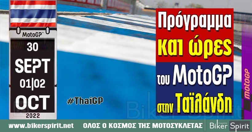 … Continue reading Πρόγραμμα και ώρες του 17ου αγώνα MotoGP 2022 στη Ταϊλάνδη – Ώρες των δοκιμαστικών και των Αγώνων στις 30/09 – 01- 02/10/2022