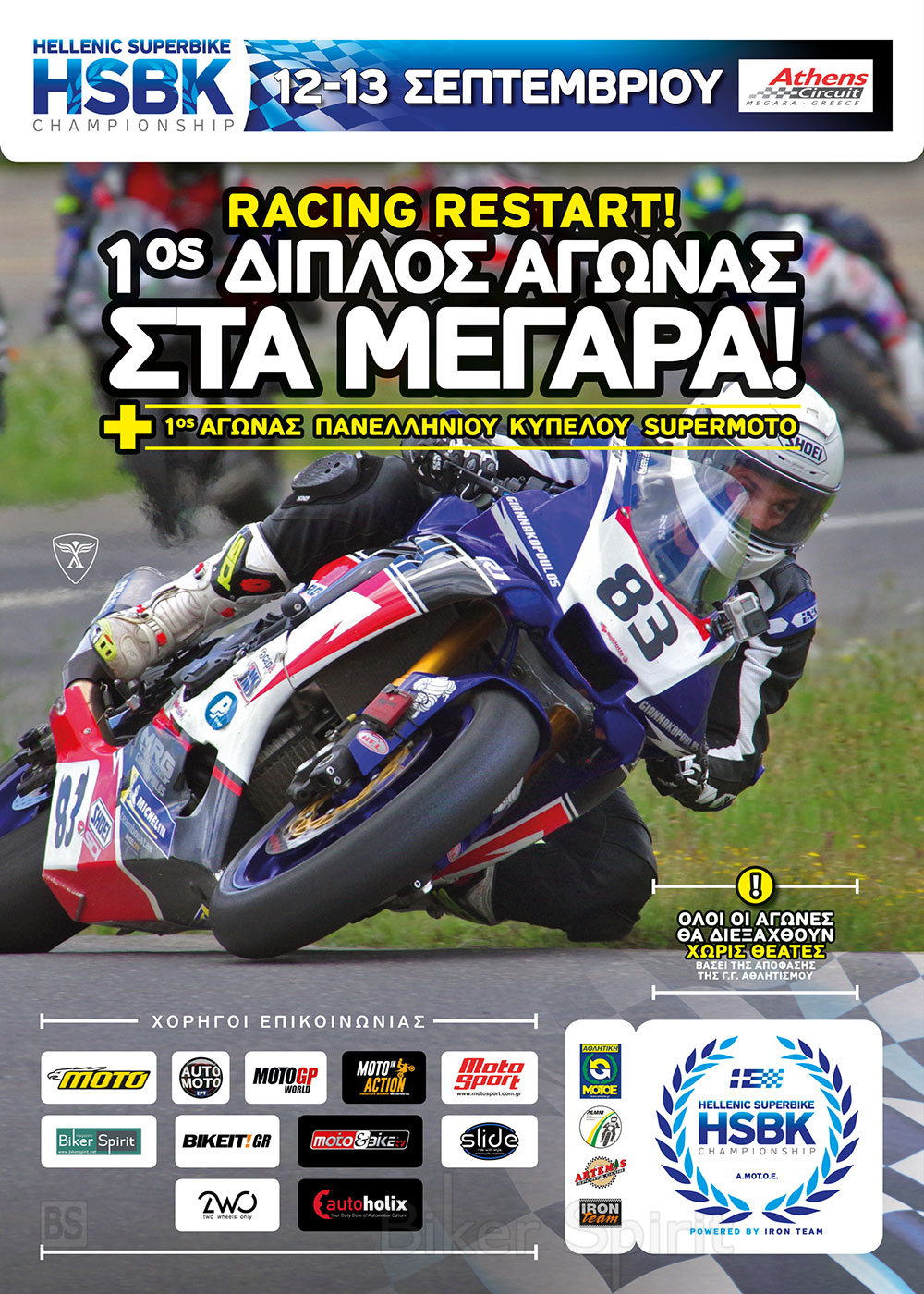 Η ΛΕ.Μ. Μεγάρων και η ΑΡΤΕΜΙΣ, με την έγκριση της ΑΜΟΤΟΕ, διοργανώνουν τους 1ο & 2ο αγώνα, για το Π.Π ταχύτητας μοτοσυκλετών στις 10 εως 13 Σεπτεμβρίου 2020 στο αυτοκινητοδρόμιο των Μεγάρων.