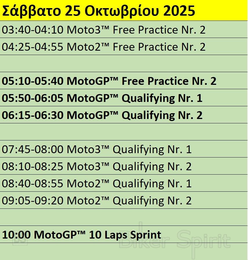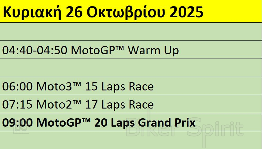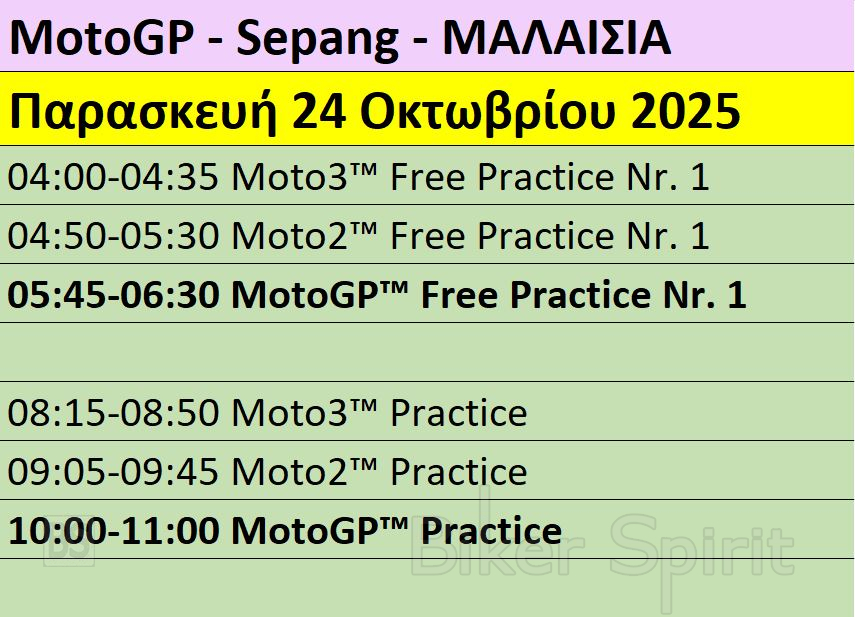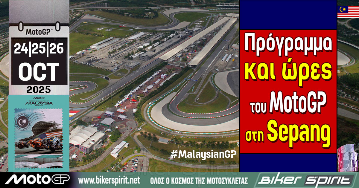 Πρόγραμμα και ώρες του 20ου αγώνα MotoGP 2025 στη Sepang της Μαλαισίας – Ώρες των δοκιμαστικών, SPRINT και των Αγώνων στις 24-25-26/10/2025 – ΠΡΟΣΟΧΗ στην διαφορά ώρας