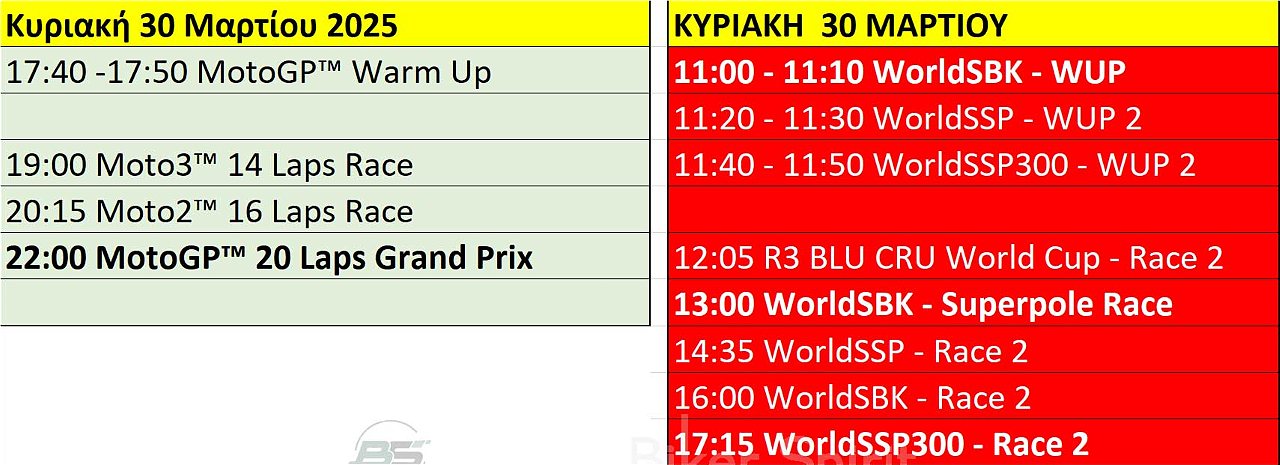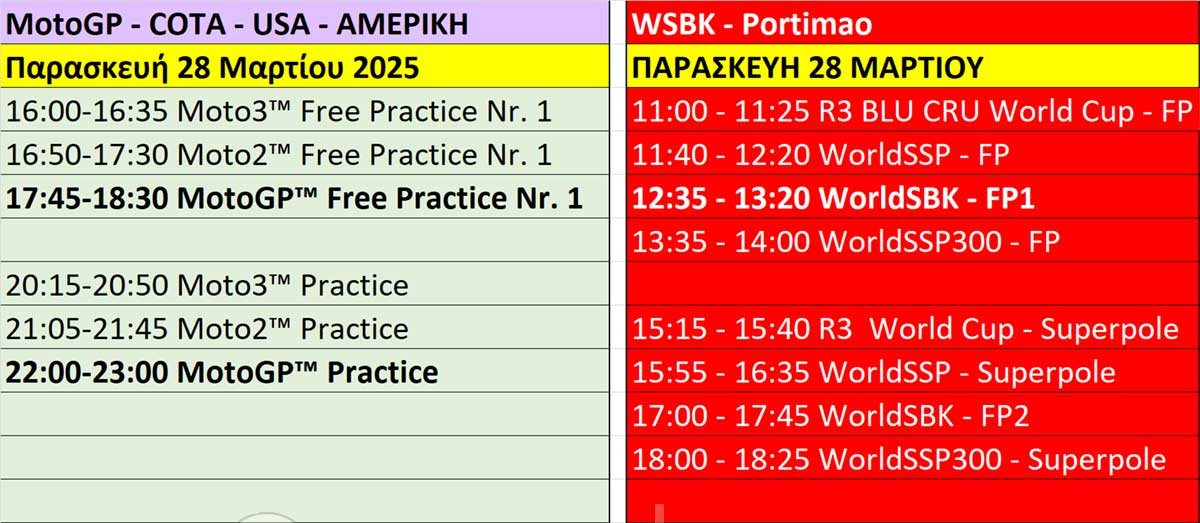 Να θυμίσουμε πως το ίδιο τριήμερο θα διεξαχθεί και ο 3ος γύρος του MotoGP στην Αμερική. Μπορείτε να δείτε το παράλληλο πρόγραμμα παρακάτω >>