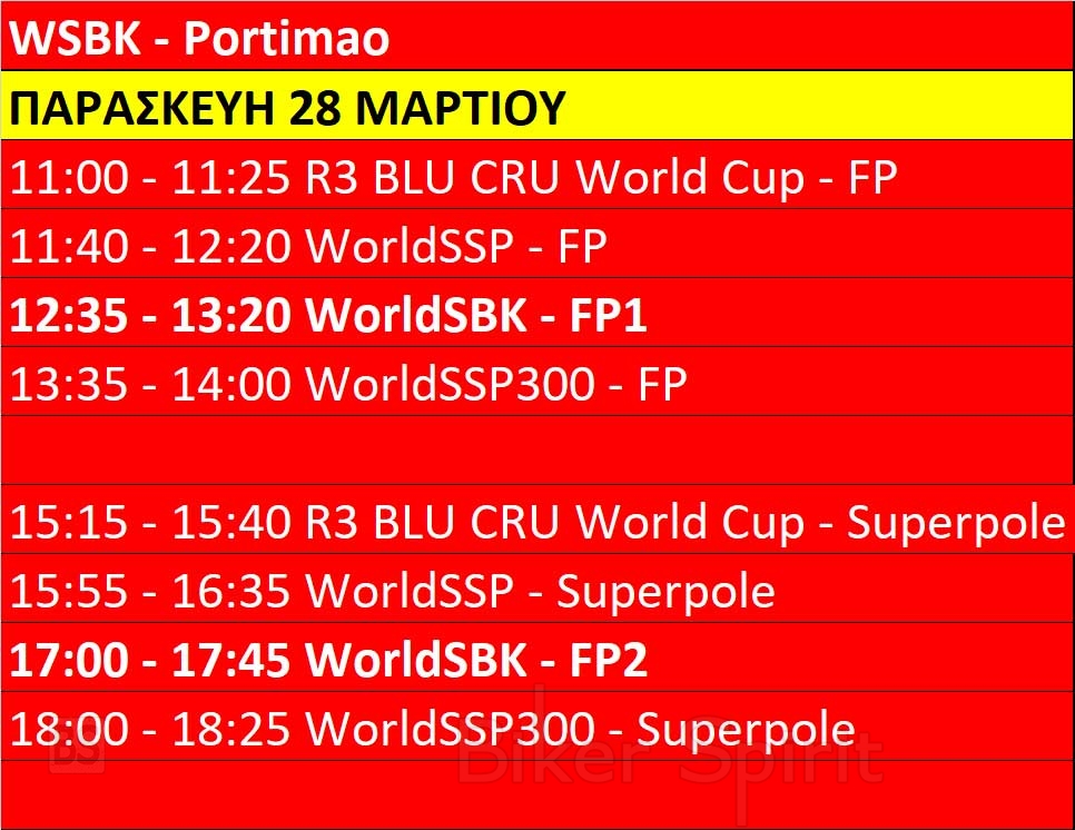 Πρόγραμμα και ώρες του 2ου γύρου των αγώνων WSBK 2025 στο Portimao της Πορτογαλίας από 28 έως 30/30/2025 – Προσοχή στην αλλαγή της ώρας σε θερινή