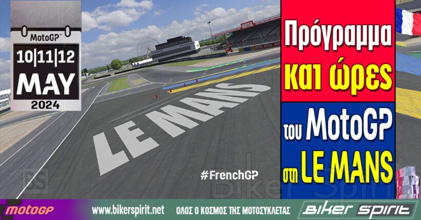 … Continue reading Πρόγραμμα και ώρες του 5ου αγώνα MotoGP 2024 στο Le Mans – Ώρες των δοκιμαστικών, του αγώνα SPRINT και των Αγώνων στις 10-11-12/05/2024