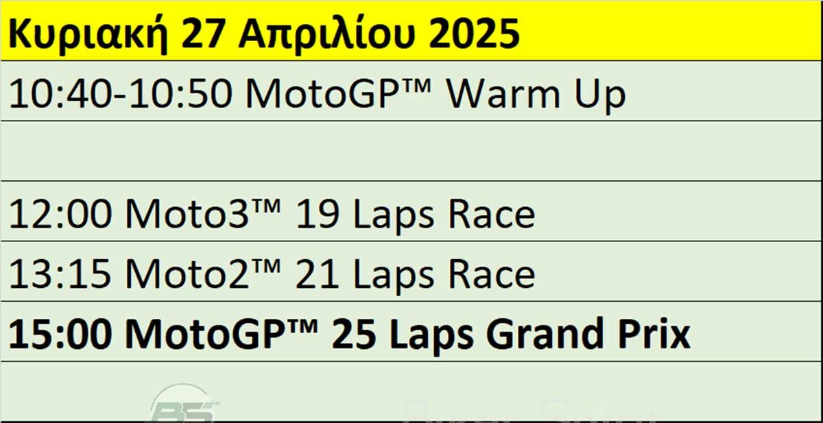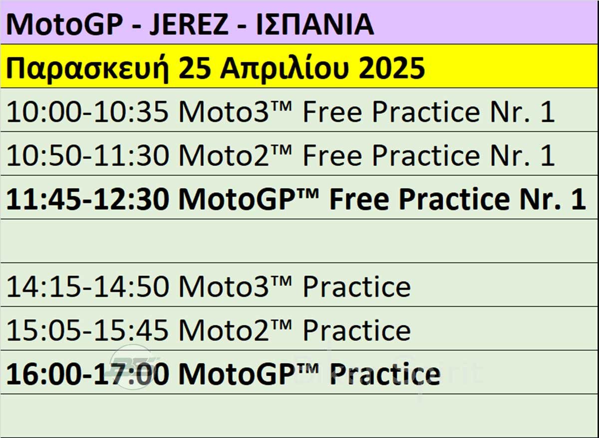 Πρόγραμμα και ώρες του 5ου αγώνα MotoGP 2025 στην Jerez – Ώρες των δοκιμαστικών, του αγώνα SPRINT και των Αγώνων στις 25-26-27/04/2025