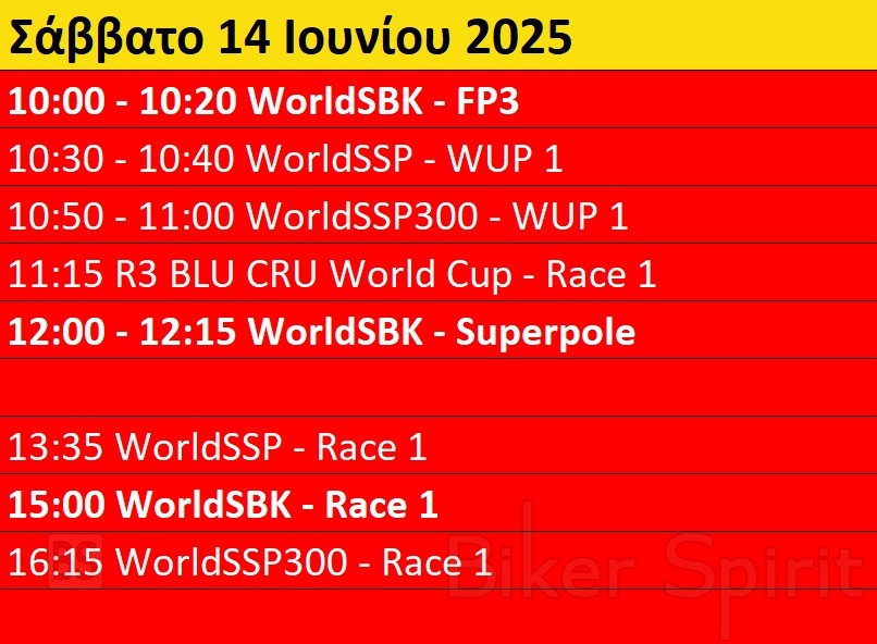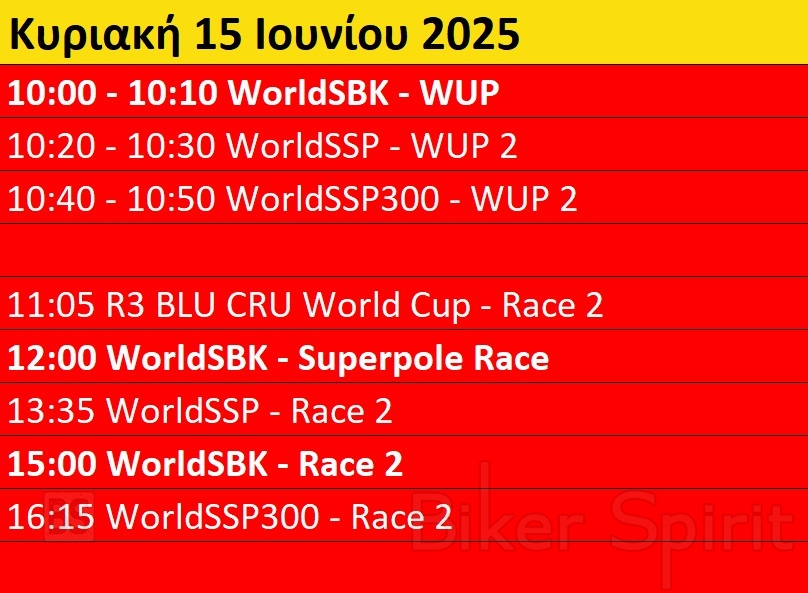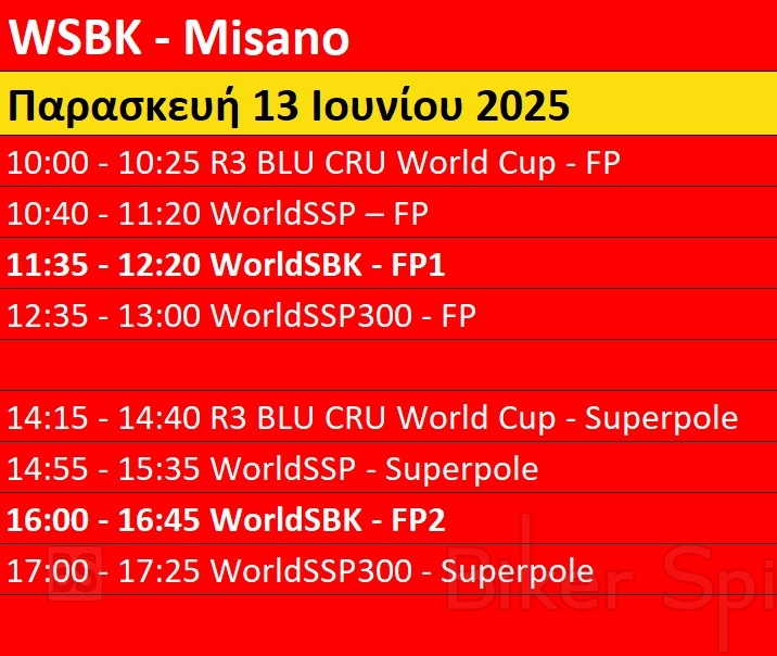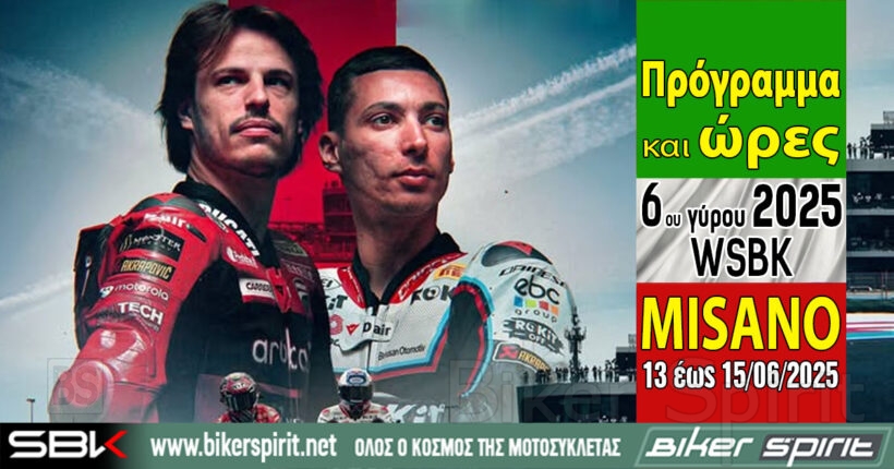 Πρόγραμμα και ώρες του 6ου γύρου των αγώνων WSBK στο Misano – Ώρες των δοκιμαστικών και των Αγώνων από 13 έως 15 Ιουνίου 2025