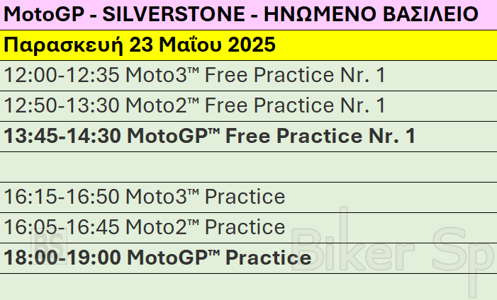 Πρόγραμμα και ώρες του 7ου αγώνα MotoGP 2025 στo Silverstone – Ώρες των δοκιμαστικών, του αγώνα SPRINT και των Αγώνων στις 23-24-25/05/2025