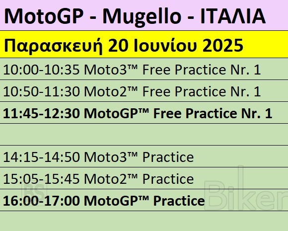 Πρόγραμμα και ώρες του 9ου αγώνα MotoGP 2025 στo Mugello – Ώρες των δοκιμαστικών, του αγώνα SPRINT και των Αγώνων στις 20-21-22/06/2025