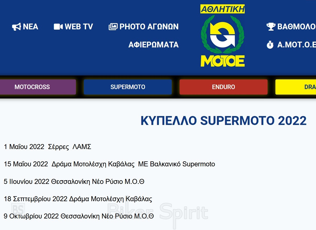 Η ΑΜΟΤΟΕ ανακοίνωσε το πρόγραμμα για το Κύπελλο SUPERMOTO του 2022, αποτελούμενο από 5 αγώνες σε Σέρρες, Δράμα και Θεσσαλονίκη.
