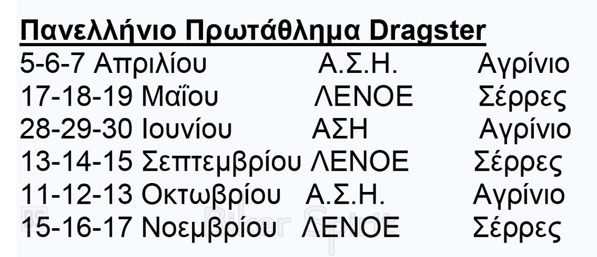 Η Αθλητική ΜΟΤ.Ο.Ε , δημοσίευσε την προκήρυξη για το Πανελλήνιο Πρωτάθλημα Dragster του 2024 αποτελούμενο από 6 αγώνες