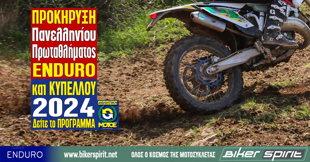 Η Αθλητική ΜΟΤ.Ο.Ε. προκηρύσσει για το έτος 2024 το Πανελλήνιο Πρωτάθλημα ENDURO και το Κύπελλο ENDURO Ελλάδος σύμφωνα με το παρακάτω πρόγραμμα: