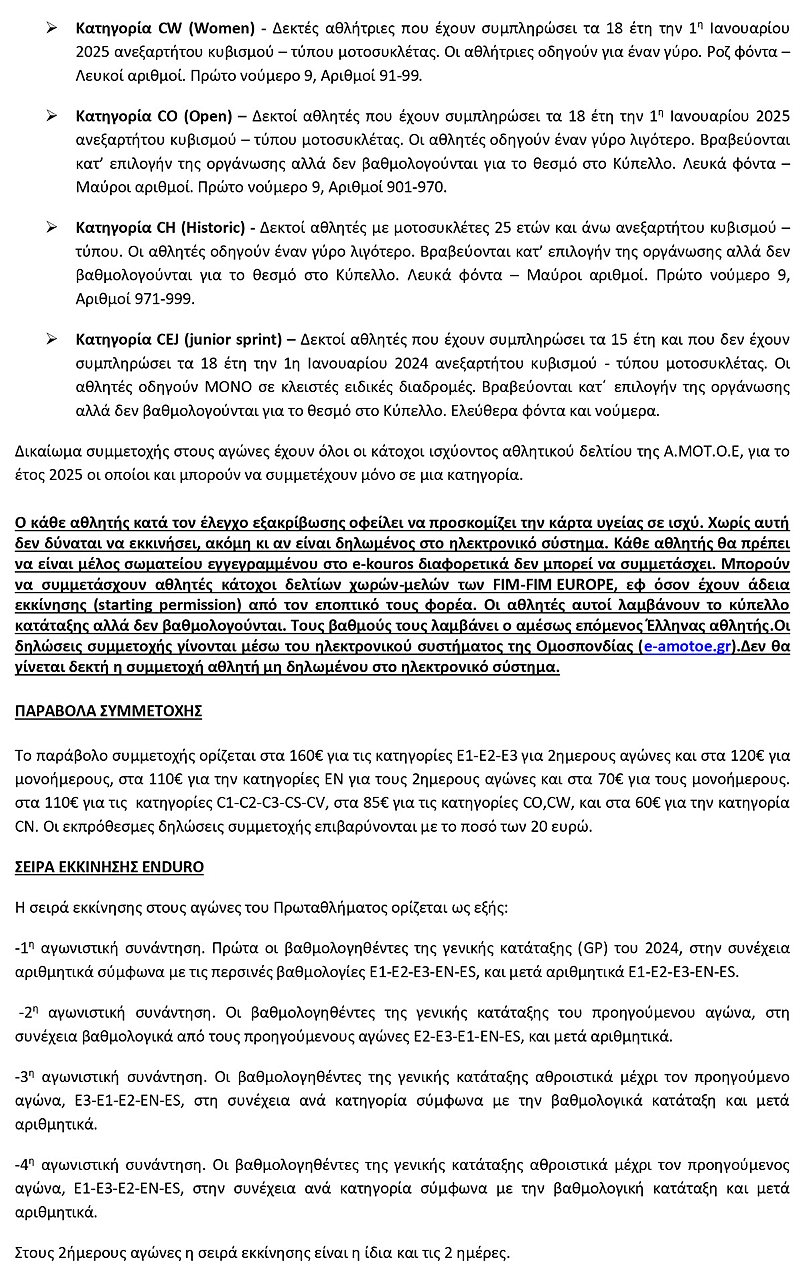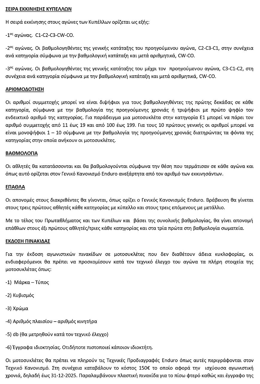 Η Προκήρυξη ΠΑΝΕΛΛΗΝΙΟΥ ΠΡΩΤΑΘΛΗΜΑΤΟΣ & ΚΥΠΕΛΛΟΥ ENDURO 2025 σε PDF