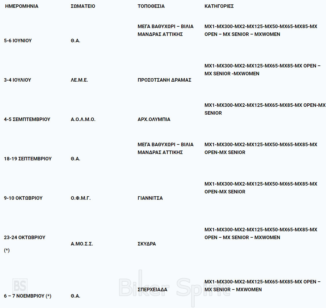 Η Αθλητική ΜΟΤ.Ο.Ε για το 2021, προκηρύσσει Πανελλήνιο Πρωτάθλημα και Κύπελλο MOTOCROSS (ΜΧ) αποτελούμενο από 7 αγώνες σύμφωνα με το παρακάτω πρόγραμμα: