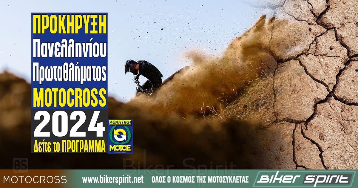 Η Αθλητική ΜΟΤ.Ο.Ε , δημοσίευσε την προκήρυξη για το Πανελλήνιο Πρωτάθλημα MOTOCROSS για το 2024, αποτελούμενο από 7 αγώνες.