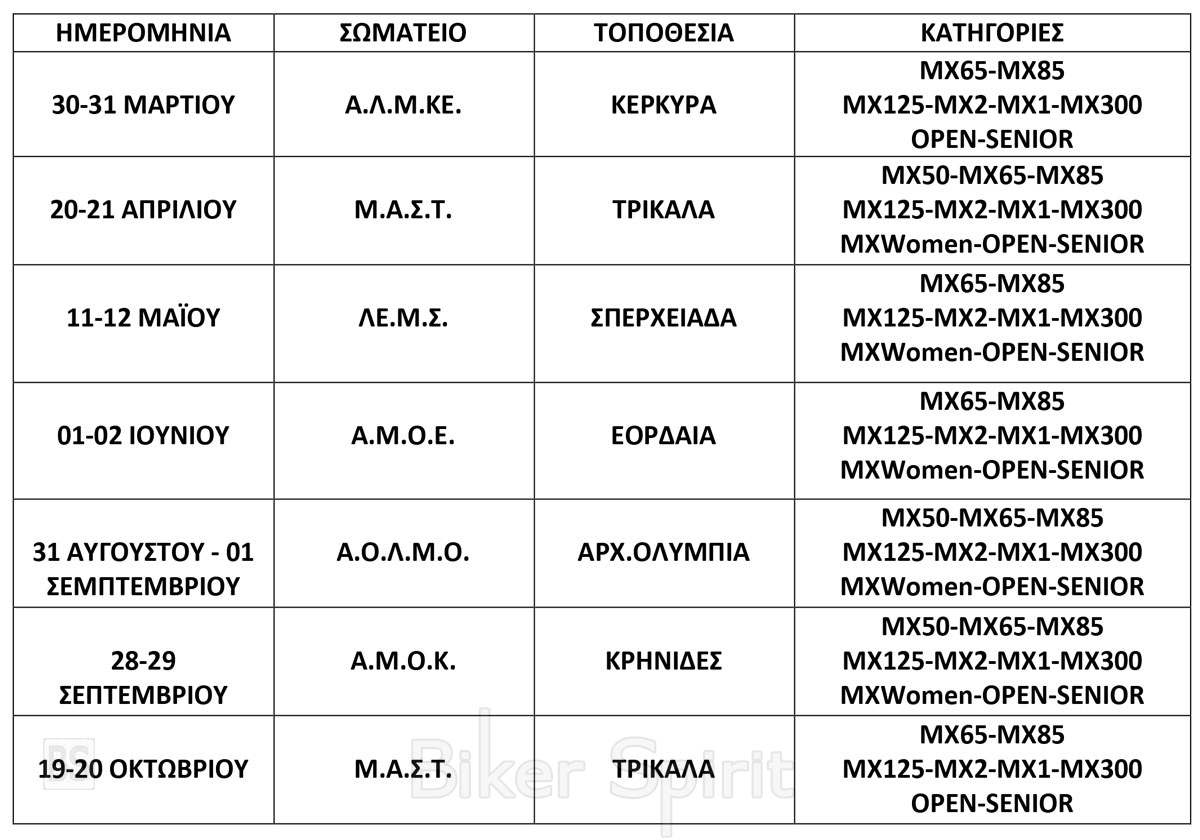 Η Αθλητική ΜΟΤ.Ο.Ε. προκηρύσσει για το έτος 2024 Πανελλήνιο Πρωτάθλημα MOTOCROSS (ΜΧ) αποτελούμενο από 7 αγώνες σύμφωνα με το παρακάτω πρόγραμμα:
