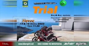 Η Αθλητική ΜΟΤ.Ο.Ε , δημοσίευσε την προκήρυξη για το Πανελλήνιο Πρωτάθλημα TRIAL του 2023 αποτελούμενο από 4 διήμερους αγώνες, συνολικά 8 οι οποίοι προσμετρούν όλοι στο Πανελλήνιο Πρωτάθλημα Trial 2023.