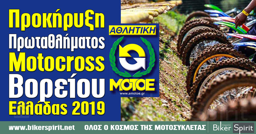 Η Αθλητική ΜΟΤ.Ο.Ε. για το 2019, προκηρύσσει Πρωτάθλημα MOTOCROSS Ν. Ελλάδας, για τους αθλητές και τις αθλήτριες των σωματείων των Περιφερειών, Αττικής, Πελοποννήσου, Στ. Ελλάδας, Κρήτης, Δυτικής Ελλάδας, Νήσων Νοτ. & Βορ. Αιγαίου και Ιονίων Νήσων αποτελούμενο από 5 αγώνες σύμφωνα με το παρακάτω πρόγραμμα:
