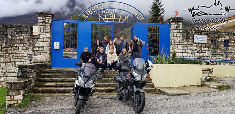 Παράλληλα, μέλη της ομάδας V-Strom Greek Riders Ηπείρου, επισκέφτηκαν την Κιβωτό του Κόσμου, στην Πωγωνιανή, όπου συγκεντρώνοντας ποσό άνω των 300 ευρώ, προσέφεραν τρόφιμα, είδη καθαρισμού και γραφικής ύλης.