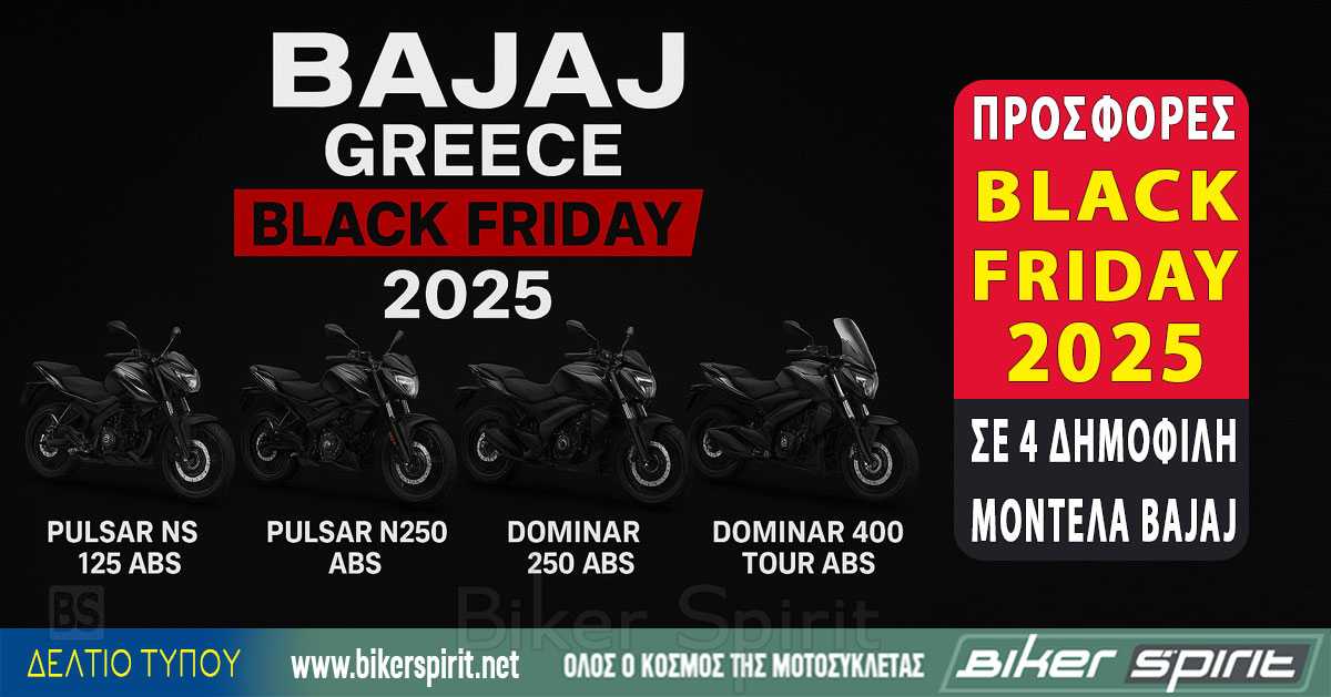 Η K-Motors A.E. ανακοινώνει το πρόγραμμα προσφορών Bajaj Black Friday για το 2025, το οποίο περιλαμβάνει μειωμένες τιμές σε τέσσερα από τα πιο δημοφιλή μοντέλα της στην Ελληνική αγορά.