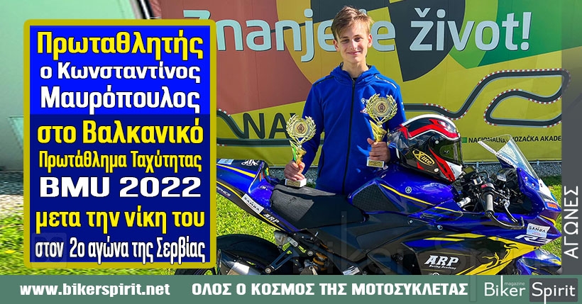 Πρωταθλητής ο Κωνσταντίνος Μαυρόπουλος στο Βαλκανικό Πρωτάθλημα Ταχύτητας BMU 2022 μετα την νίκη του στον 2ο αγώνα της Σερβίας