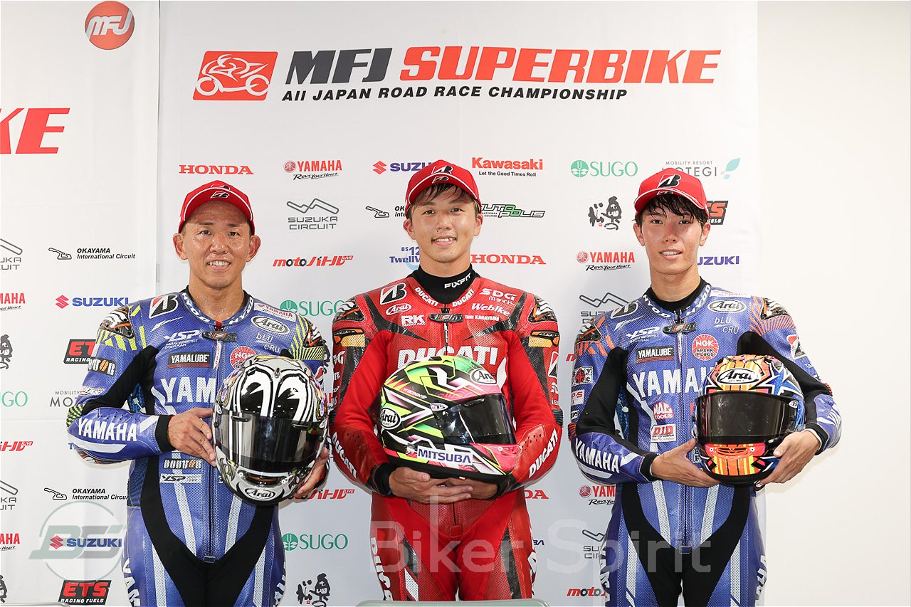 Στην καρό σημαία, ο Ryo Mizuno τελείωσε τον αγώνα με προβάδισμα 4,135 δευτερολέπτων έναντι της εργοστασιακής Yamaha YZF-R1 του Katsuyuki Nakasuga και 5,384 δευτερολέπτων έναντι της αδελφής μοτοσυκλέτας του Yuki Okamoto.