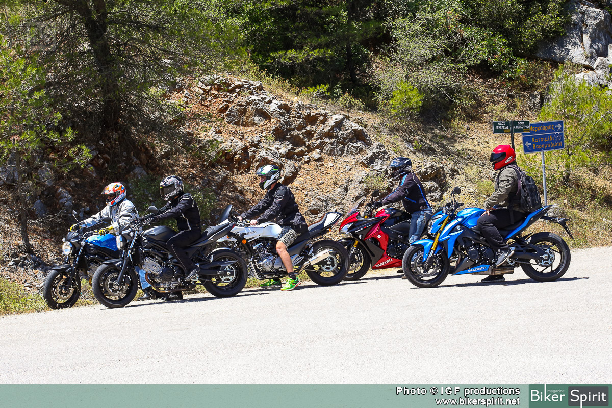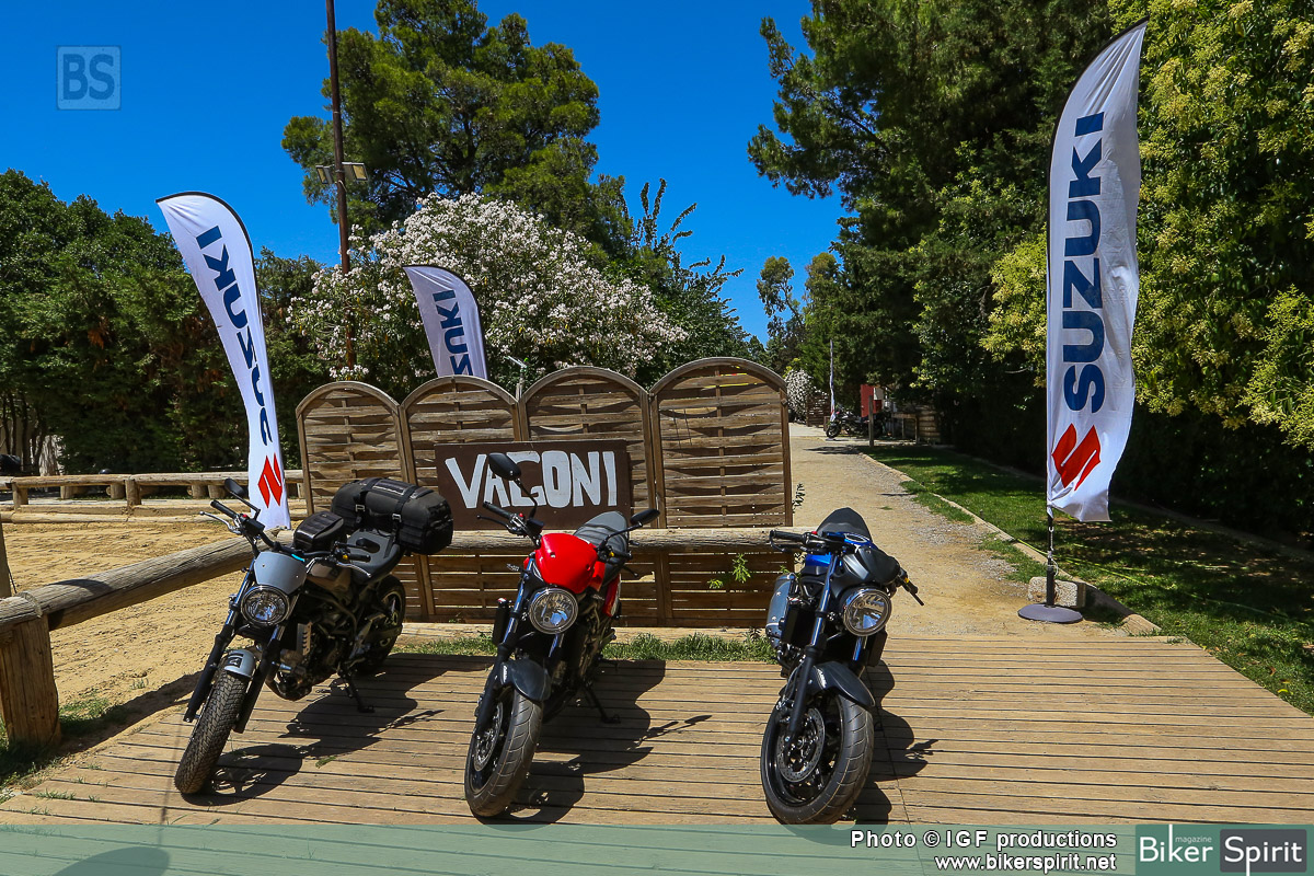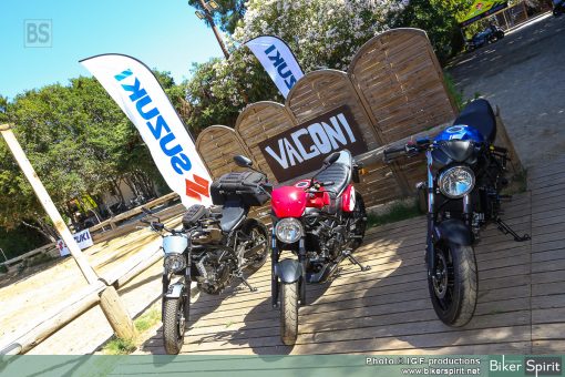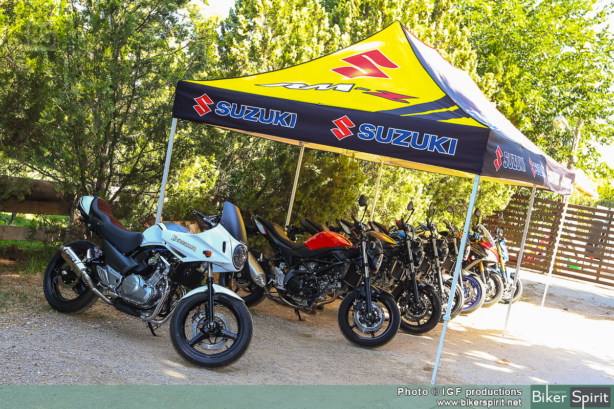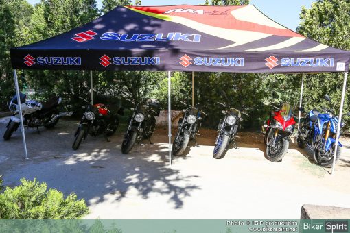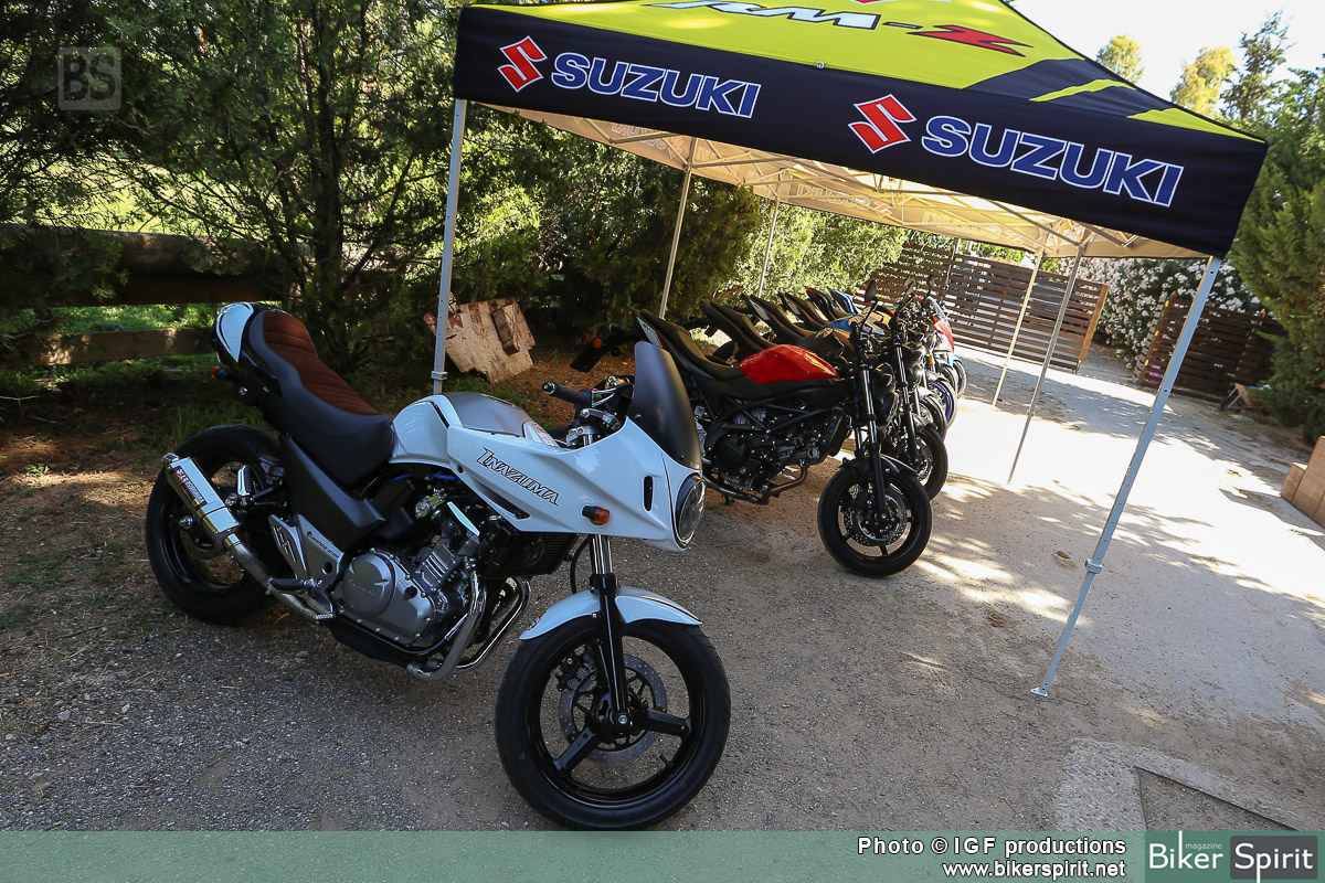 Είχαμε την ευκαιρία να οδηγήσουμε τα SV 650 και Van Van 200, αλλα και αλλά μοντέλα από την γκάμα της Ιαπωνικής εταιρίας, όπως τα GSX-S 1000 και GSX-S 1000F. Επίσης οδηγήσαμε τον μοναδικό custom cafe racer Suzuki Inazuma 250 φτιαγμένο από τους Adrenaline Junkies.