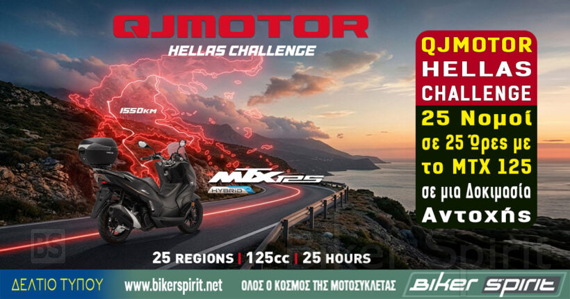 Ένα απαιτητικό οδικό εγχείρημα με σαφή στόχο και συγκεκριμένα όρια ξεκινά ο Κωνσταντίνος Μητσάκης, επιχειρώντας τη διάσχιση 25 νομών της Ελλάδας μέσα σε 25 ώρες με ένα scooter 125 cc, το QJMOTOR MTX 125. Το “QJMOTOR HELLAS CHALLENGE” δεν αποτελεί ένα συμβατικό ταξίδι, αλλά μια δοκιμασία αντοχής του αναβάτη και του οχήματος, σε πραγματικές συνθήκες και αυστηρό χρονικό πλαίσιο.