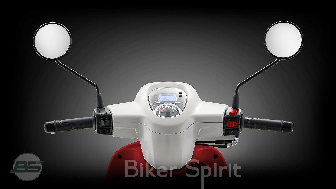 Ο οβάλ πίνακας οργάνων διατηρεί τη διαχρονική αισθητική τους αναλογικού ταχύμετρου και ταυτόχρονα ενσωματώνει όλες τις απαραίτητες πληροφορίες στην ευανάγνωστη γαλάζια οθόνη LCD.