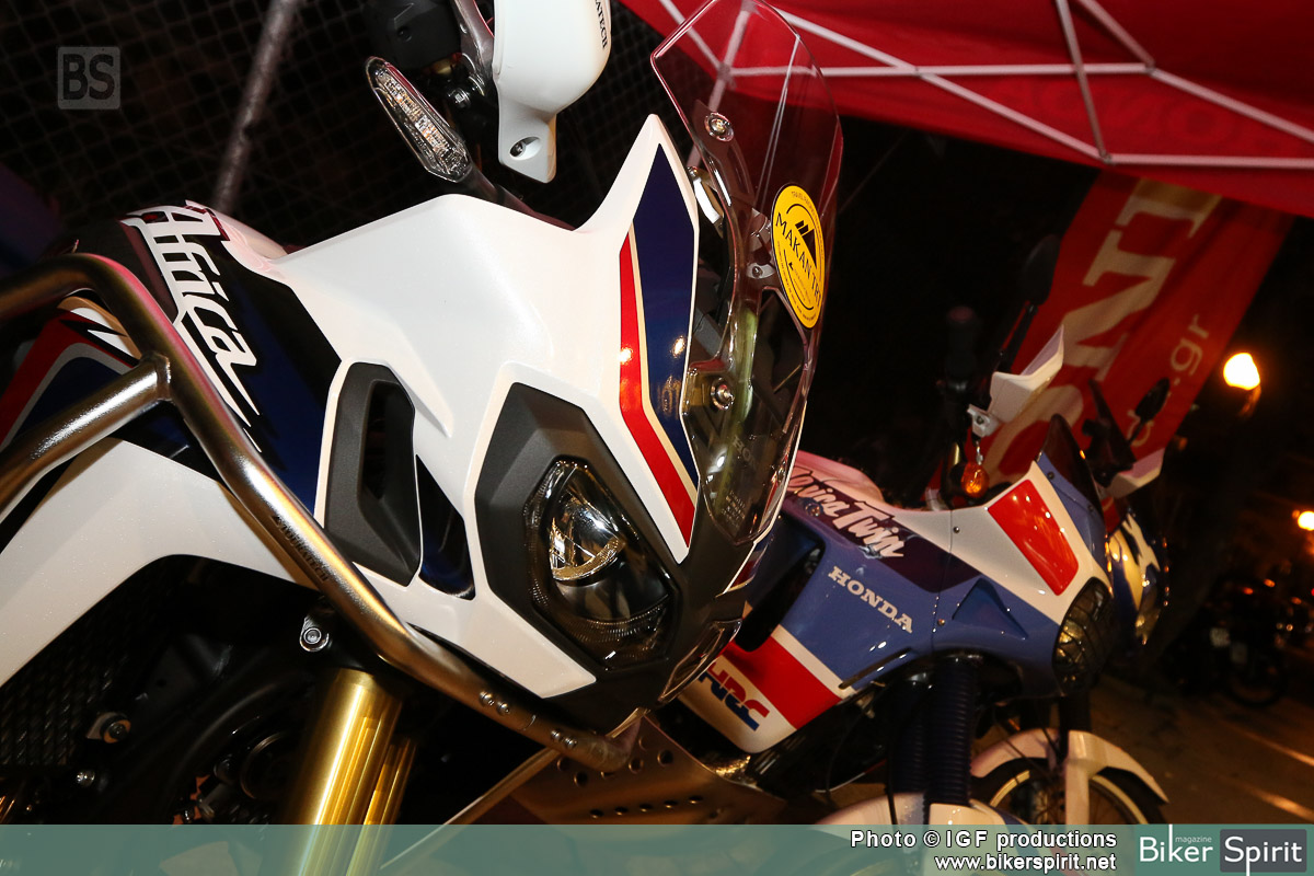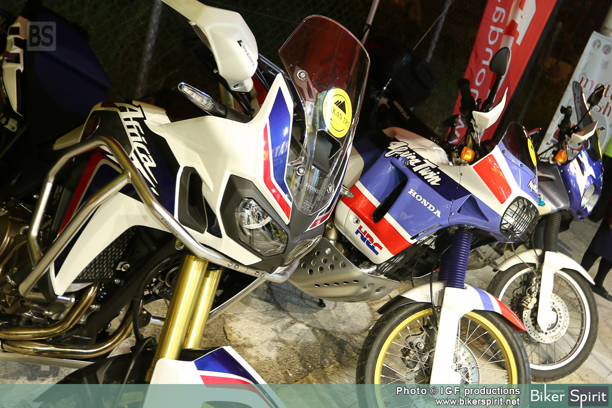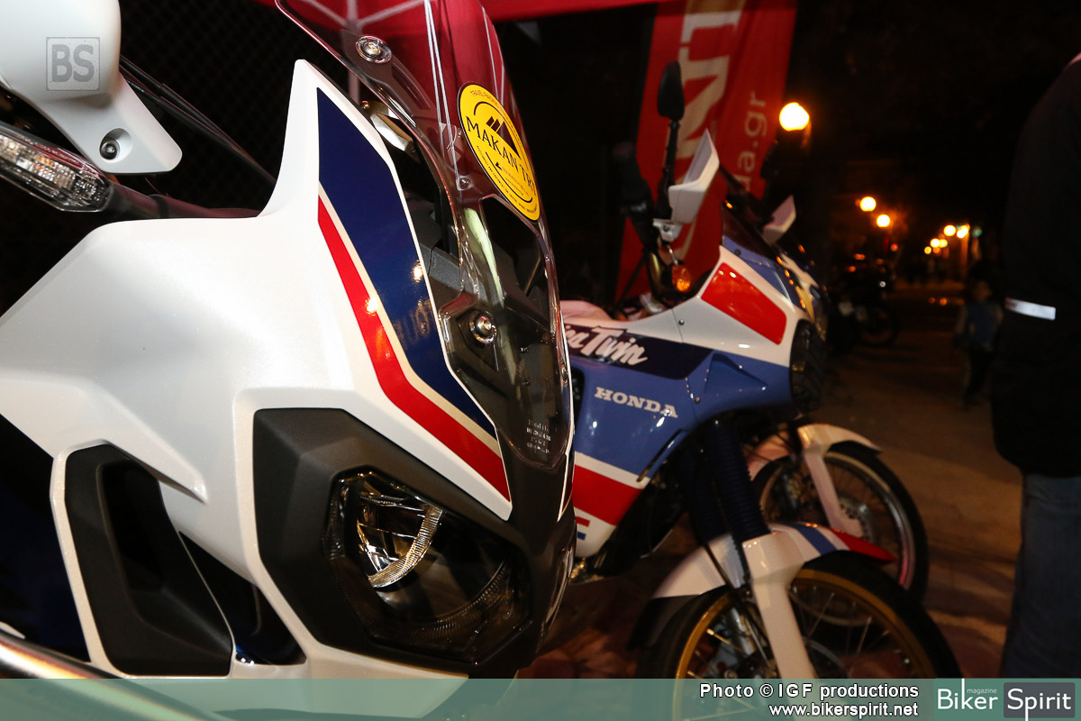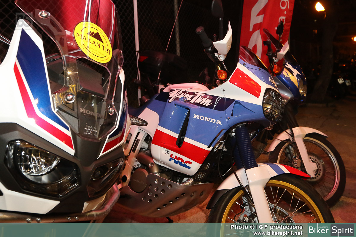 Κάτω από τον ήχο της μουσικής αρκετοί φίλοι με κυρίαρχο το Africa Twin Club, θαύμαζαν την νέα Africa Twin δίπλα στα δυο παλιότερα μοντέλα του ιστορικού μοντέλου της Honda.