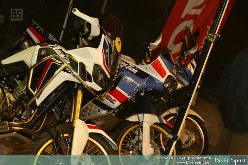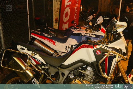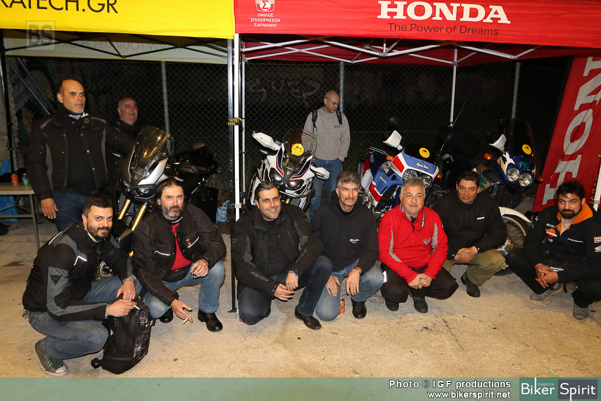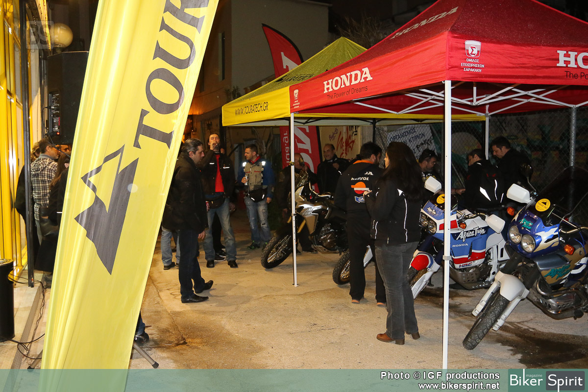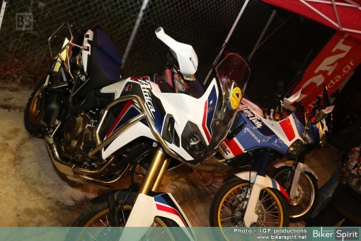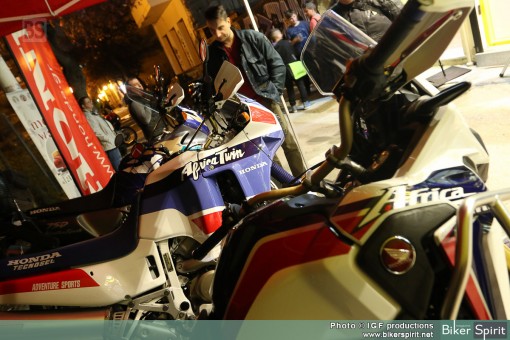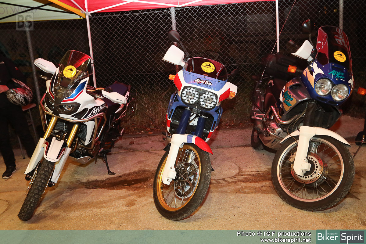 Κάτω από τον ήχο της μουσικής αρκετοί φίλοι με κυρίαρχο το Africa Twin Club, θαύμαζαν την νέα Africa Twin δίπλα στα δυο παλιότερα μοντέλα του ιστορικού μοντέλου της Honda.