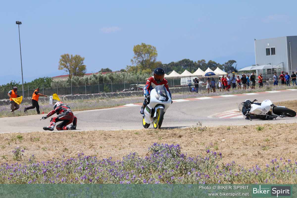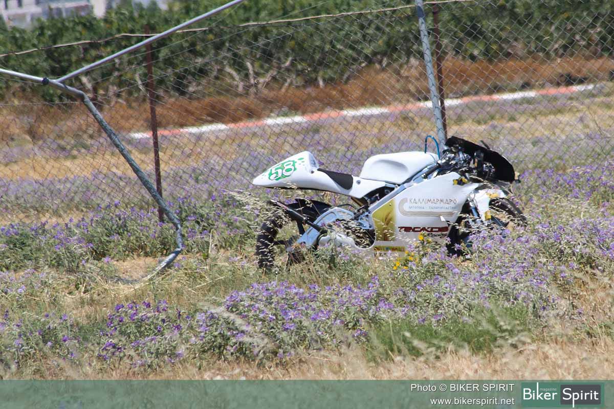 Στον 5ο γύρο είχε μια σφοδρή πτώση στην Κ10 ο Λέανδρος Ντότσικας, ευτυχώς χωρίς τραυματισμό αλλά με πολλές ζημιές στην μοτοσικλέτα του!