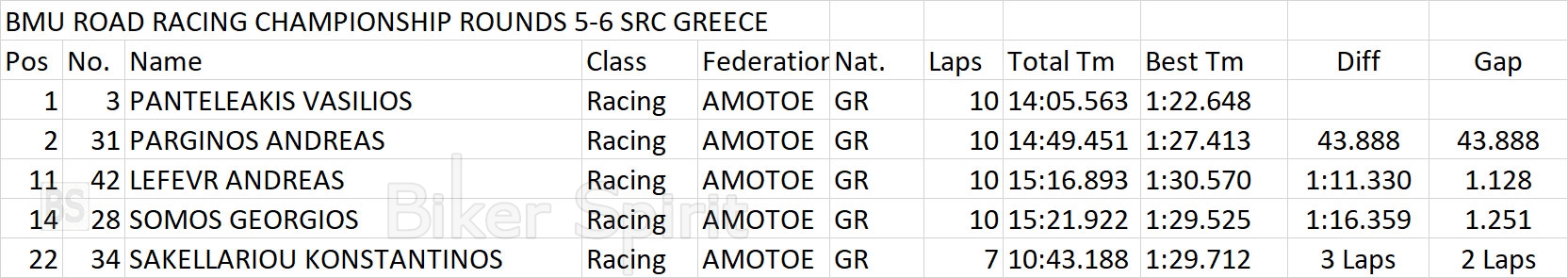 Ο Παντελεάκης ξεκίνησε από την pole position στην σχάρα και κατάφερε και πήρε την καρό σημαία άνετα χωρίς να απειληθεί από κανέναν με μια τεράστια διαφορά από τον δεύτερο που ξεπέρασε τα 43 δευτερόλεπτα!