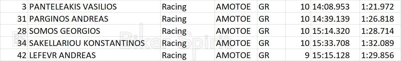 Στην τρίτη θέση, της κατηγορίας ο Γιώργος Σώμος και στην 7η του αγώνα, κλείνοντας το βάθρο στη Racing.
